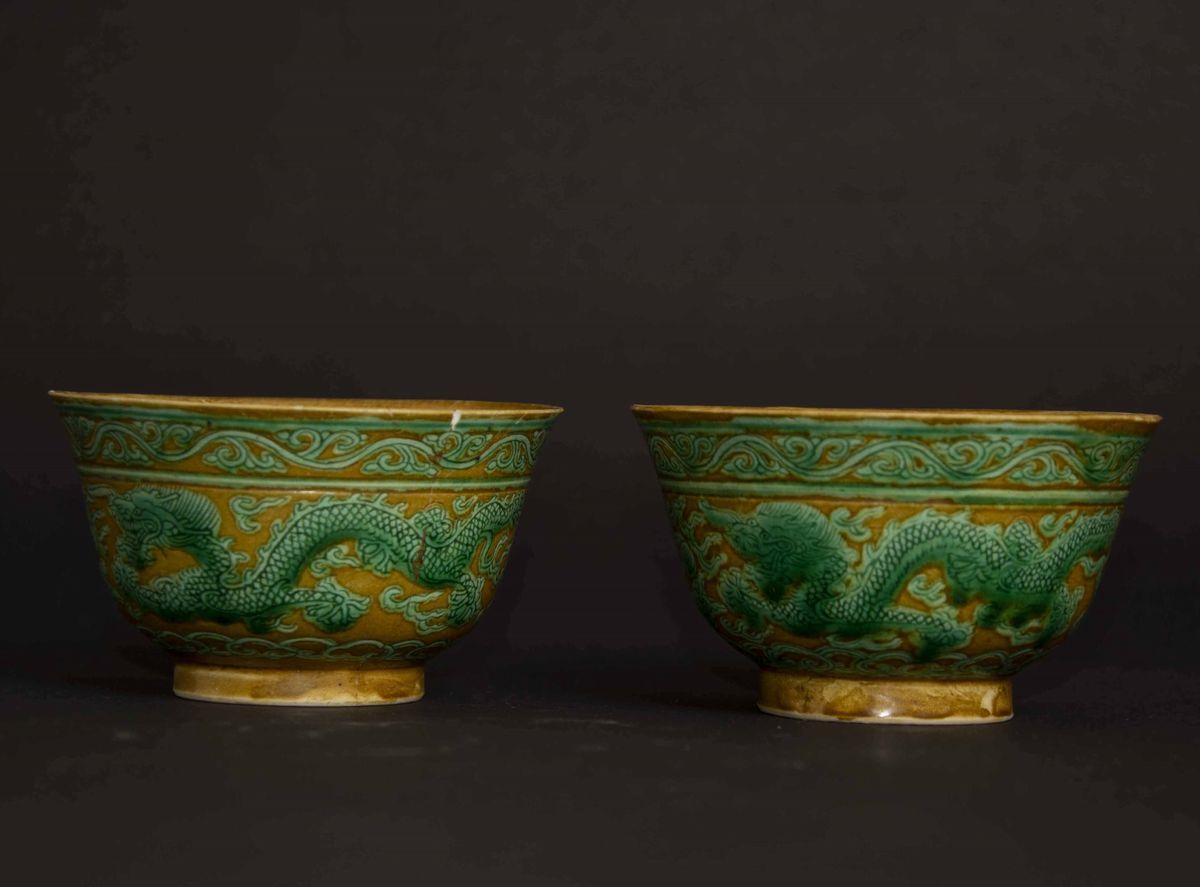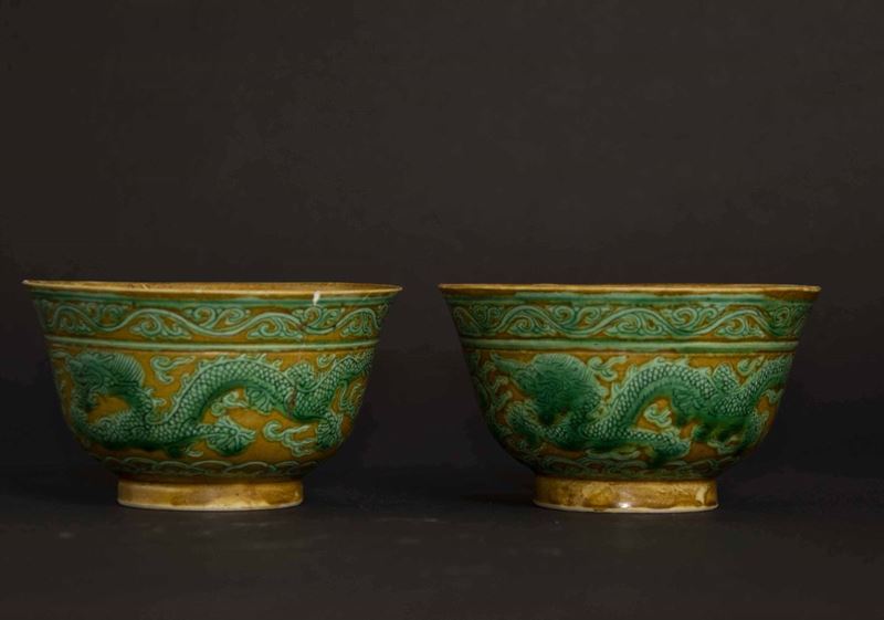 Two small Sancai bowls, China, Qing Dynasty