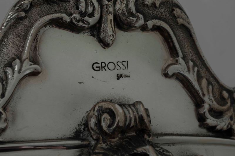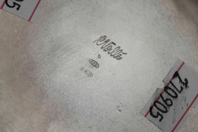 Bowl in argento 925 fuso, sbalzato e cesellato. Argenteria artistica milanese del XX secolo. Argentiere Vallè Mario per Grossi gioielli