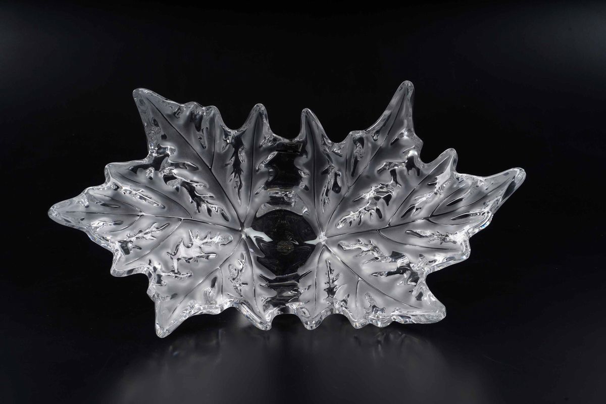 Cristallo. Marca: “Lalique France” inciso all’acido. Dimensioni: altezza cm 18,5; cm 45x25,5