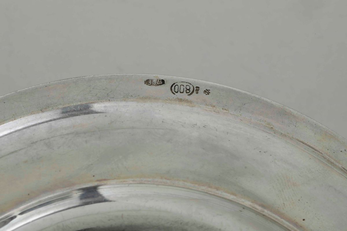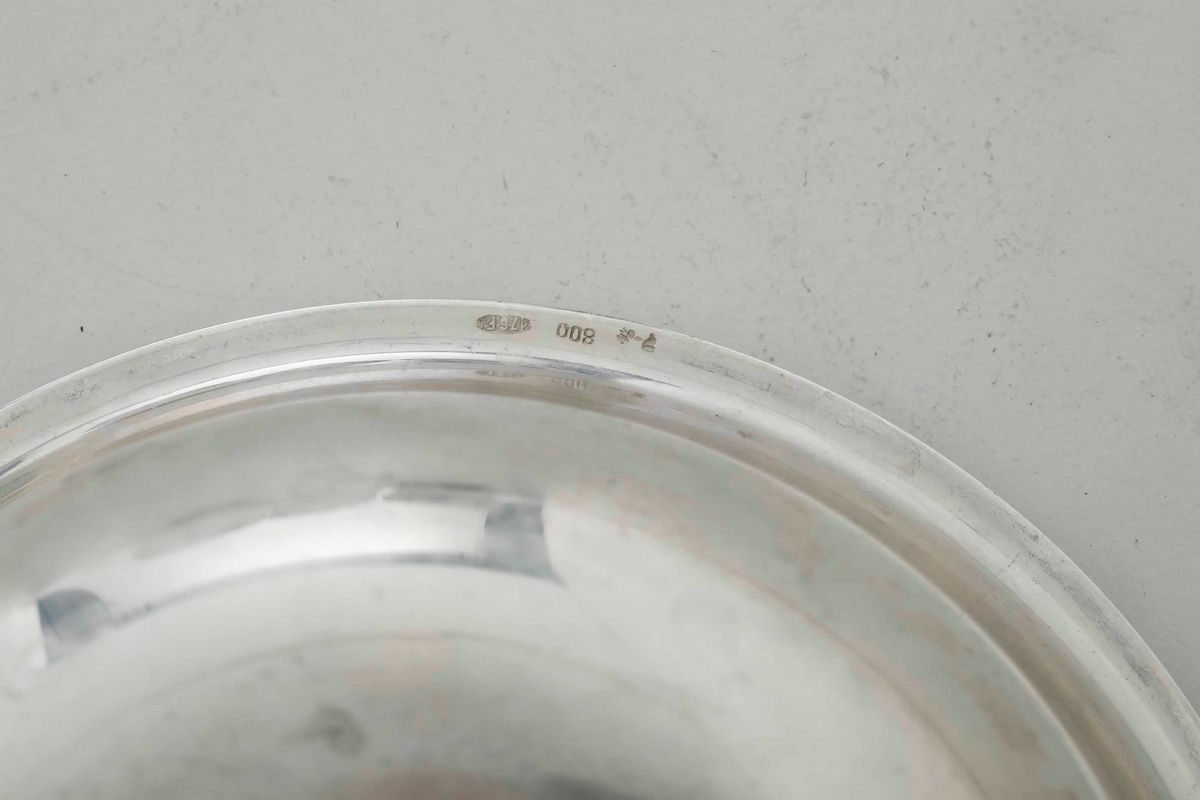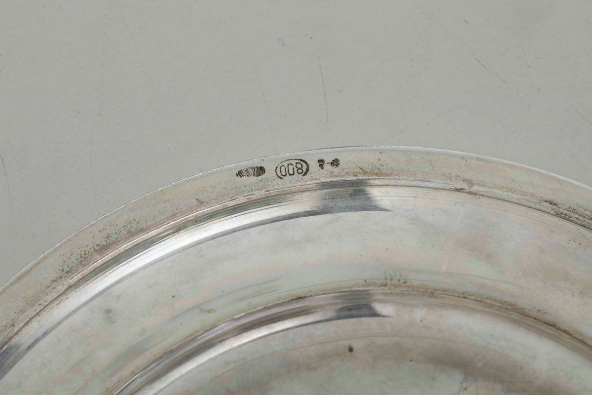 Dodici ciotole con piattini in argento. Argenteria italiana del XX secolo, argentiere Pampaloni, Firenze