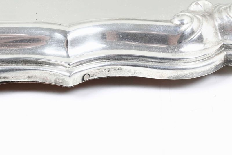 Presentoire. Argento fuso e sagomato, legno e specchio. Argenteria artistica Italiana del XX secolo. Argentiere Castaudi & Gautero, Vercelli.