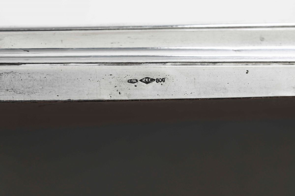 Presentoire in argento e specchio. Argenteria italiana del XX secolo. Bollo con fascio littorio in uso dal 1935 al 1945. Argentiere Ricci & C. Alessandria