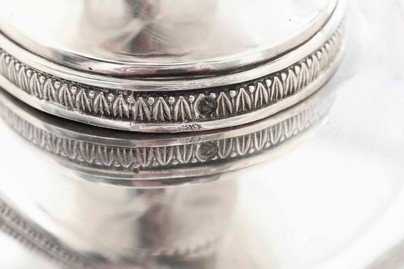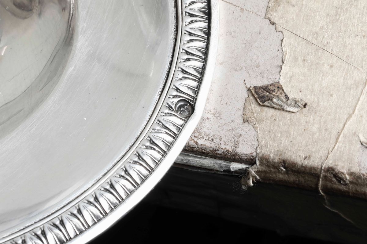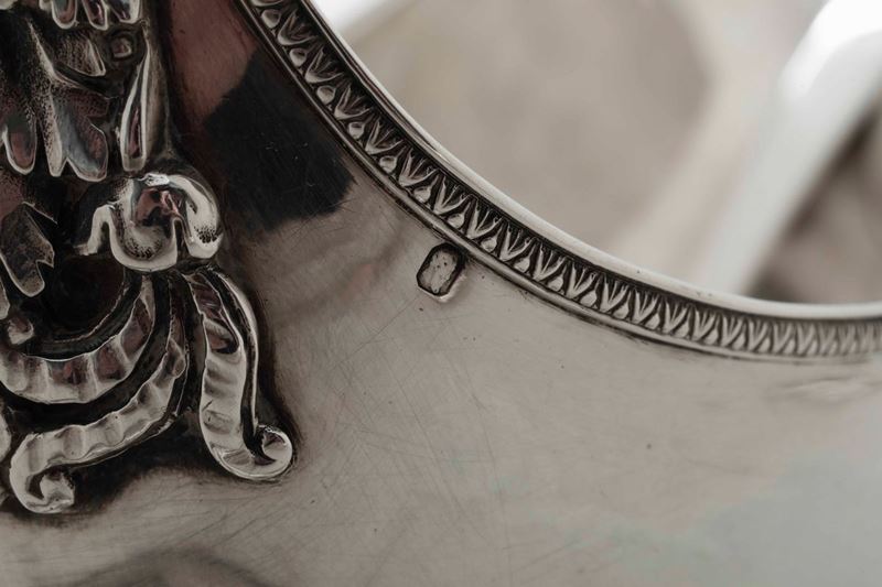 Salsiera in argento primo titolo fuso e cesellato. Parigi, marchi in uso dal 1819 al 1838 e marchio dell'argentiere consunto di difficile lettura