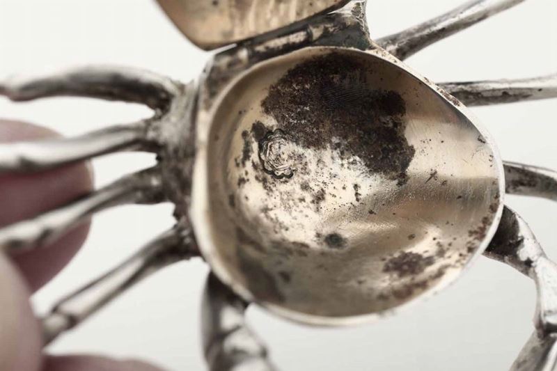 Sei saliere a forma di granchio in argento. Probabile manifattura extraeuropea del XX secolo