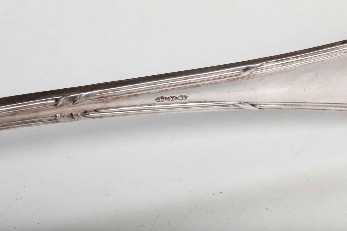 Servizio di posate in argento fuso e cesellato. Argenteria italiana del XX secolo. Argentiere Ricci & C, Alessandria