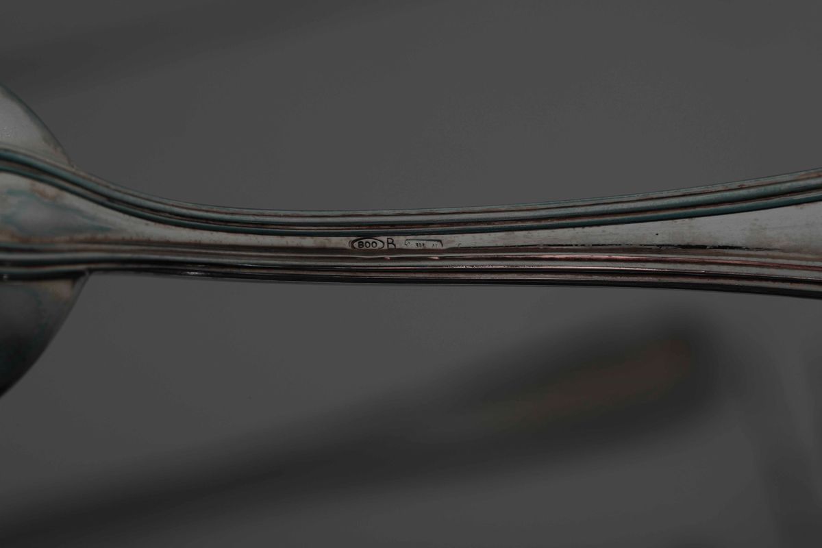 Servizio di posate in argento per dodici coperti. Argenteria italiana del XX Secolo. Argentiere Fratelli Bagliani Alessan [..]
