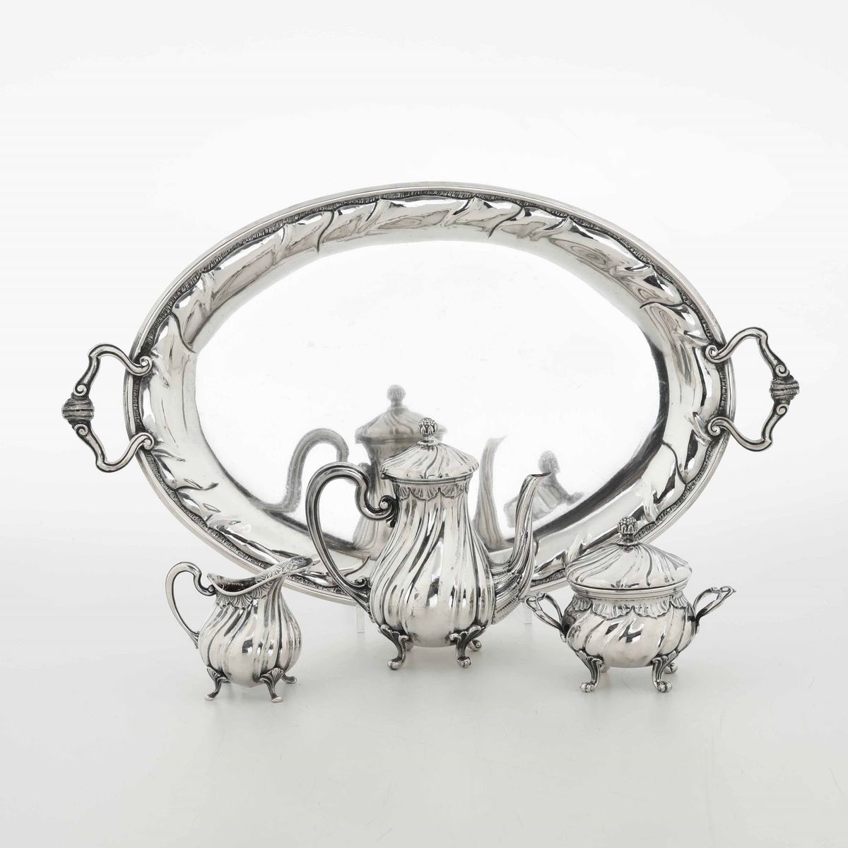 composto da caffettiera, lattiera, zucchieriera e vassoio.