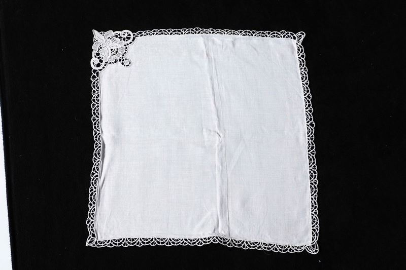 In lino completamente realizzata a mano da esperte ricamatrici in pizzo di Burano