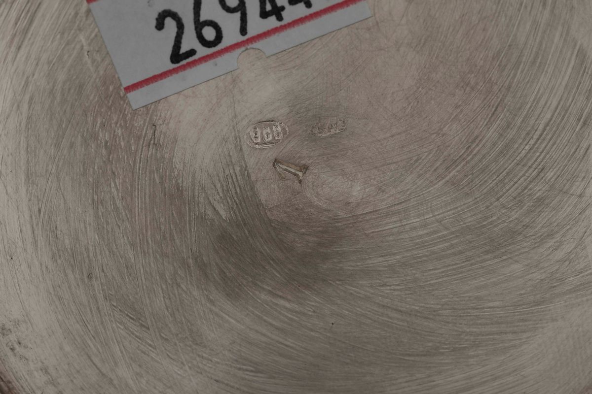 Zuppiera in argento fuso e sbalzato. Argenteria italiana del XX secolo. Argentiere I.M.A., Alessandria