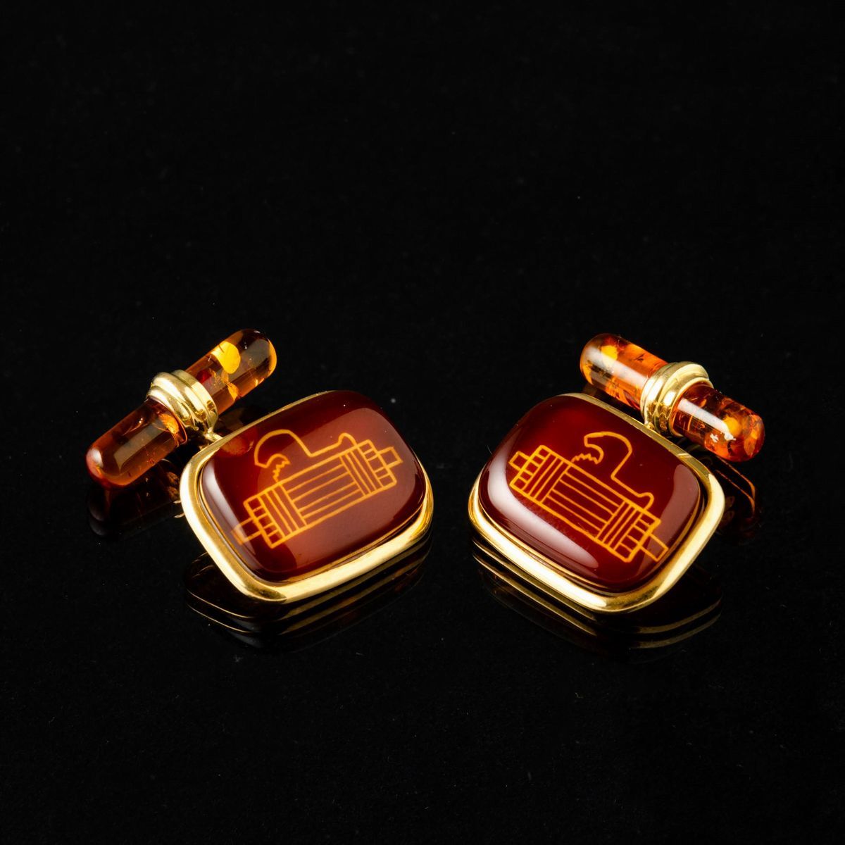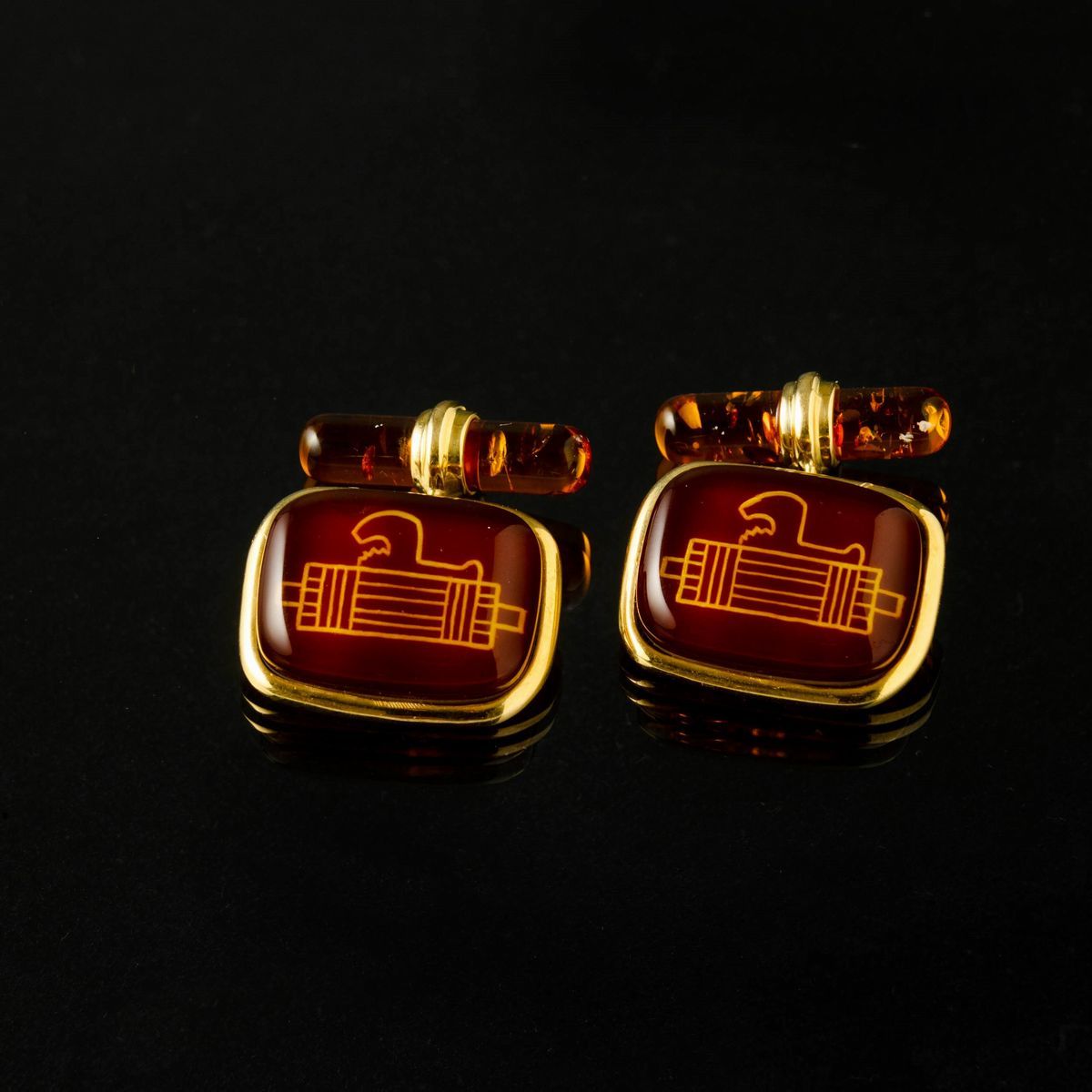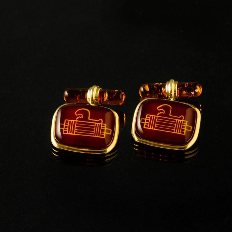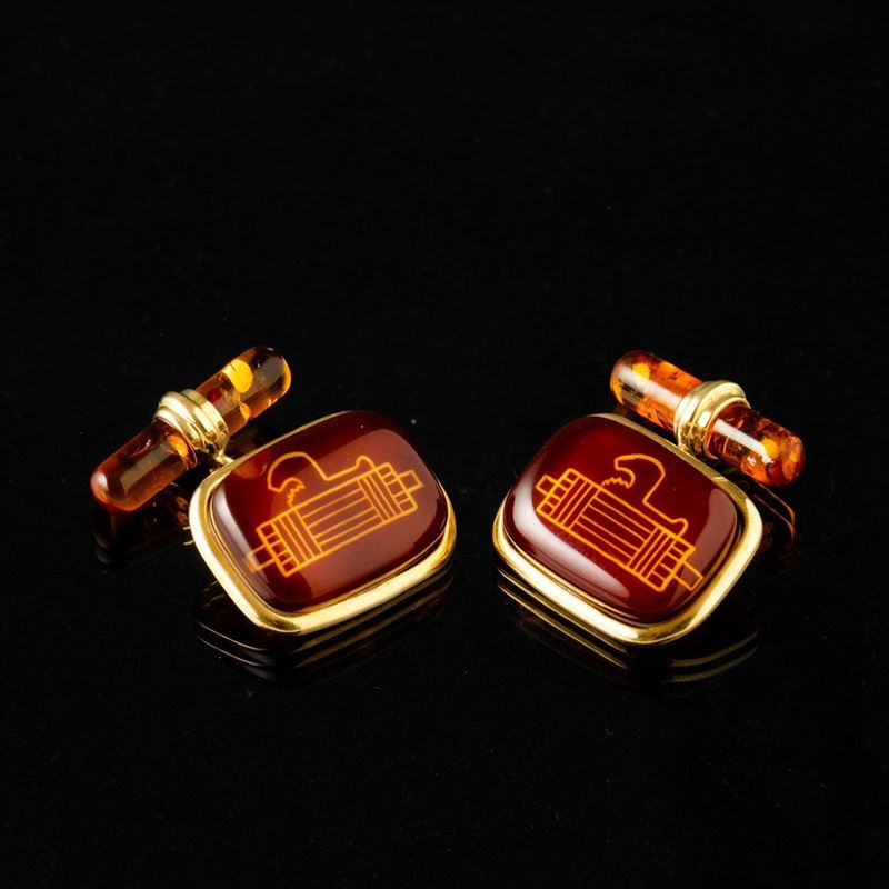 In ambra su base in madreperla e oro 18 k