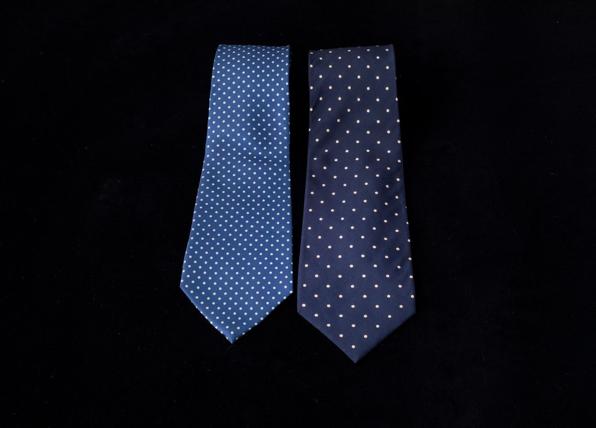 Lotto di 2 cravatte Vintage in seta a pois fondo blu/azzurro