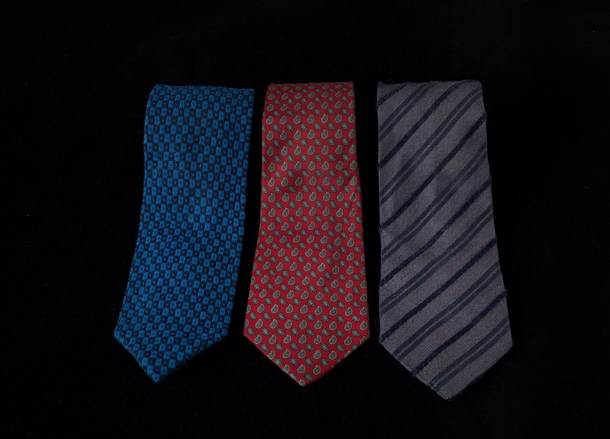 Lotto di 3 cravatte Vintage disegni e tessuti misti