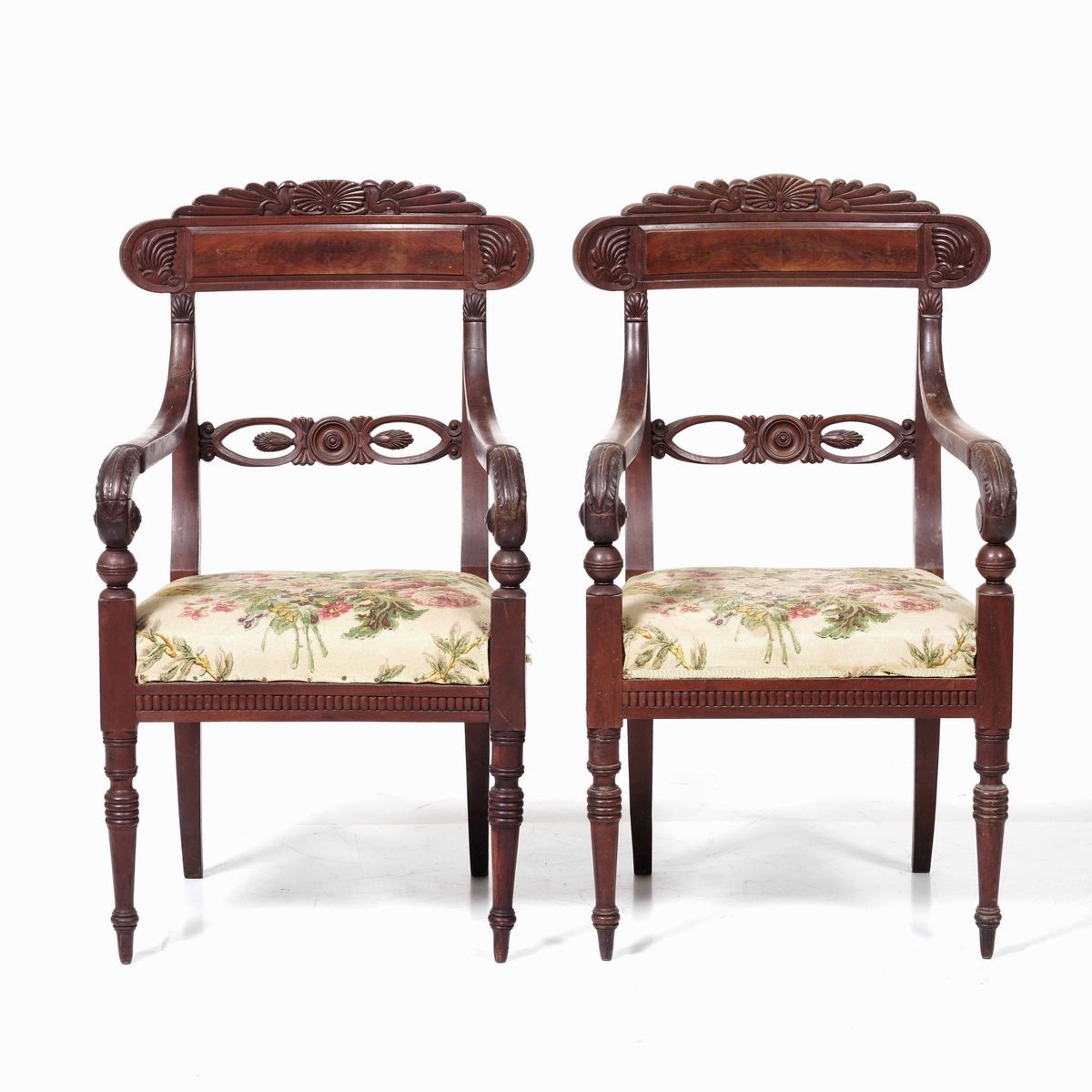 Coppia di poltrone in mogano intagliato. XIX secolo