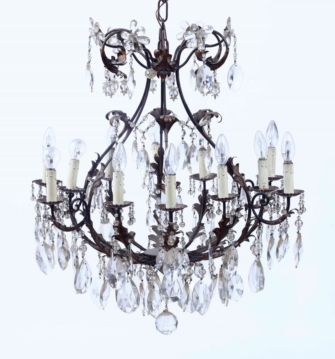 Lampadario con pendenti in vetro molato, secolo XIX-XX