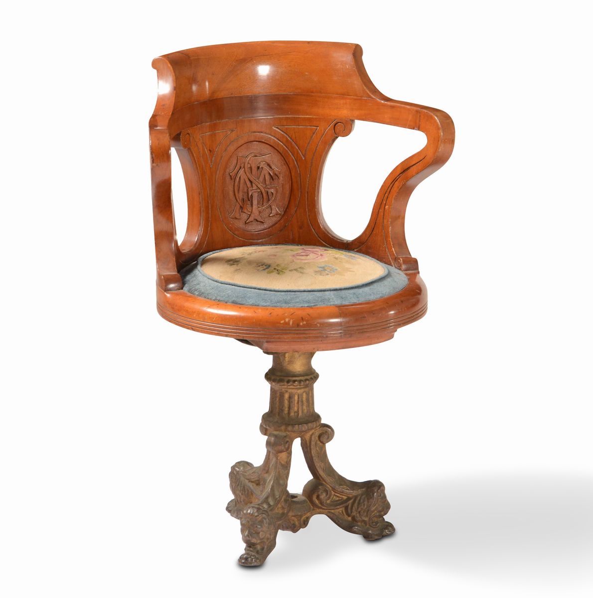 Poltrona girevole in legno con base in antimonio, XIX secolo