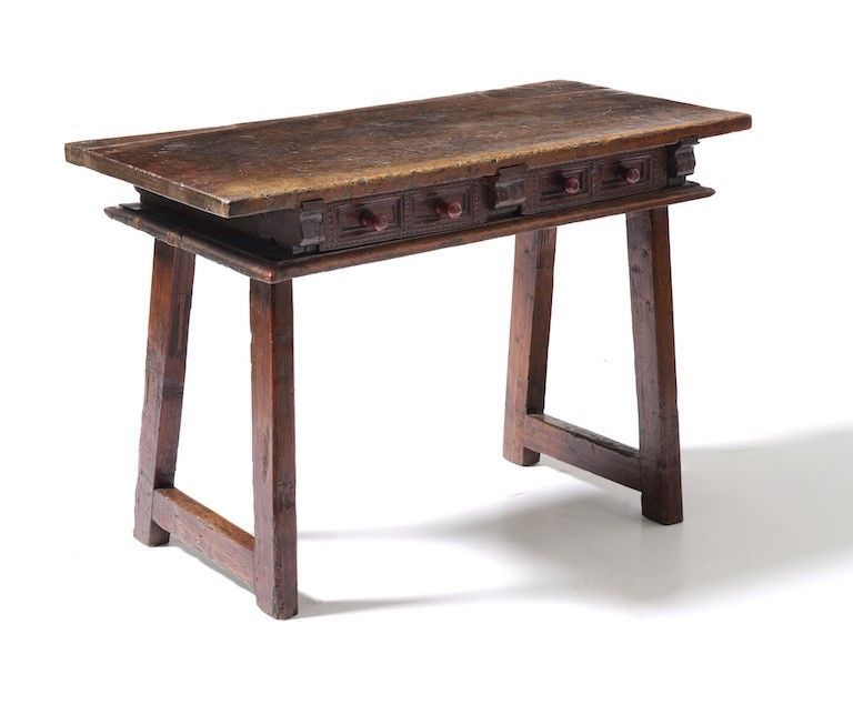 Tavolo a due cassetti sulla fascia. Spagna, XVII-XVIII secolo