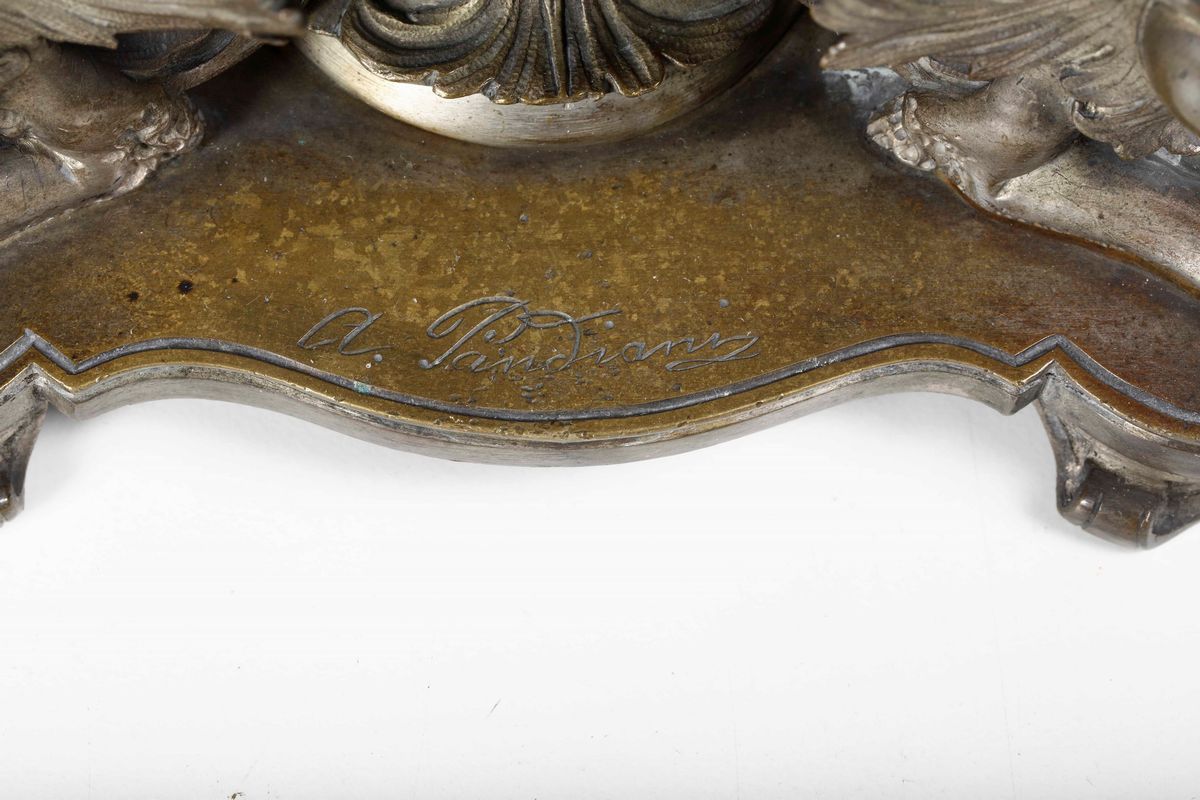 piedi a grifoni e coperchio a guisa di fanciullo. Firmato alla base