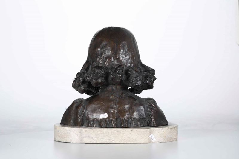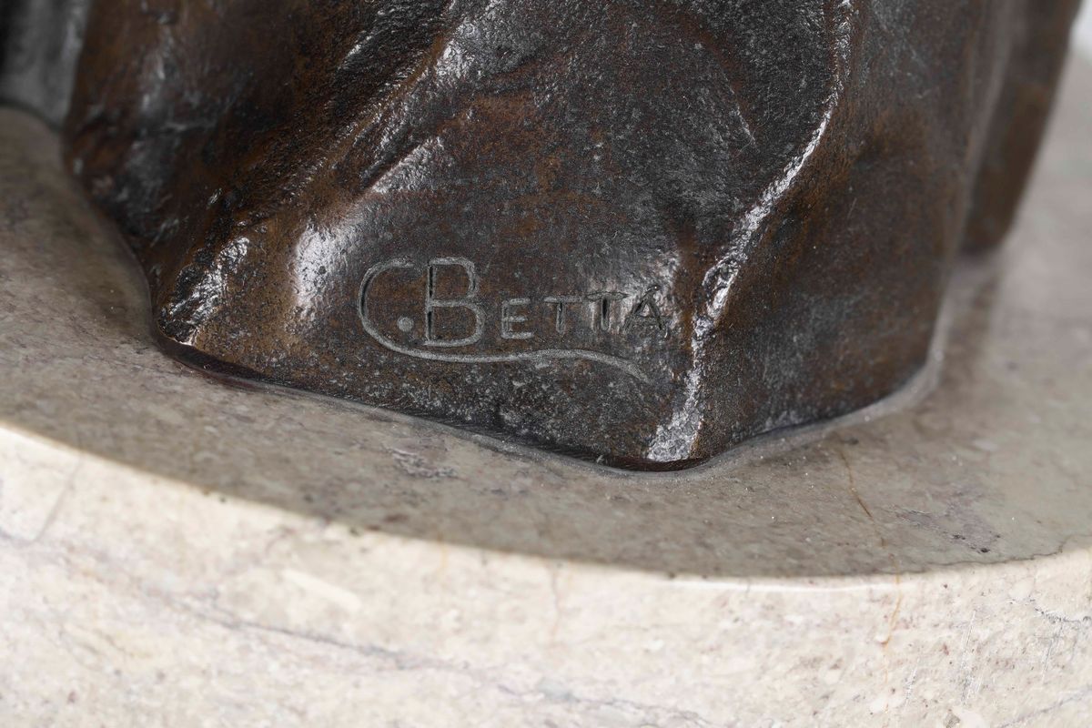 Scultura in bronzo su base in marmo. Firma incisa sul retro