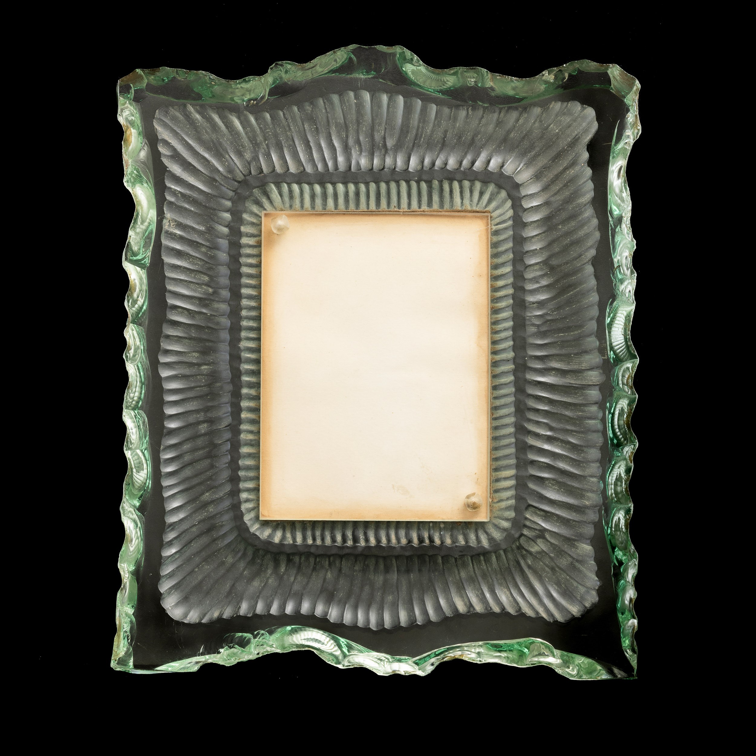 Portaritratti in cristallo con decoro inciso alla mola. Bordo irregolare.