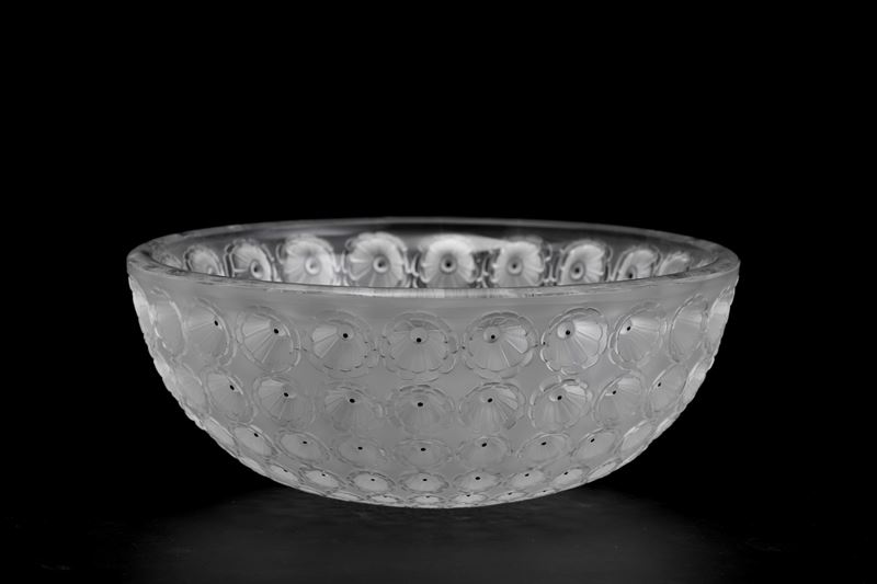 Coppa serie Nemours in cristallo stampato con decoro di fiori sabbiati.