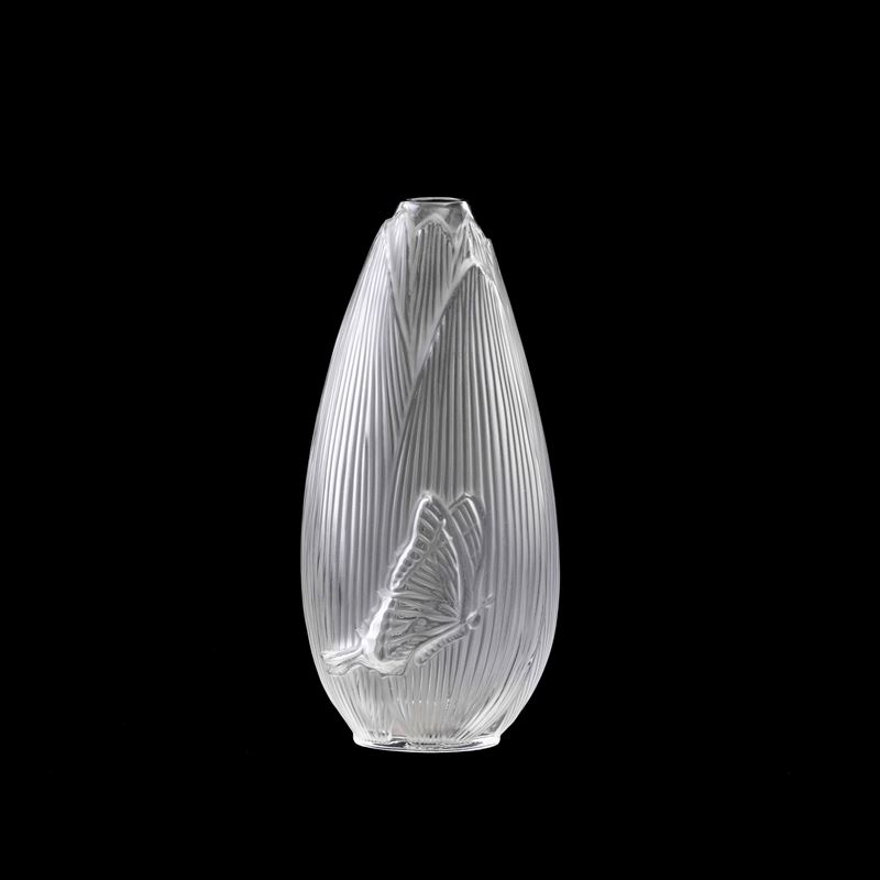 Vaso a goccia in cristallo con decoro di farfalla.