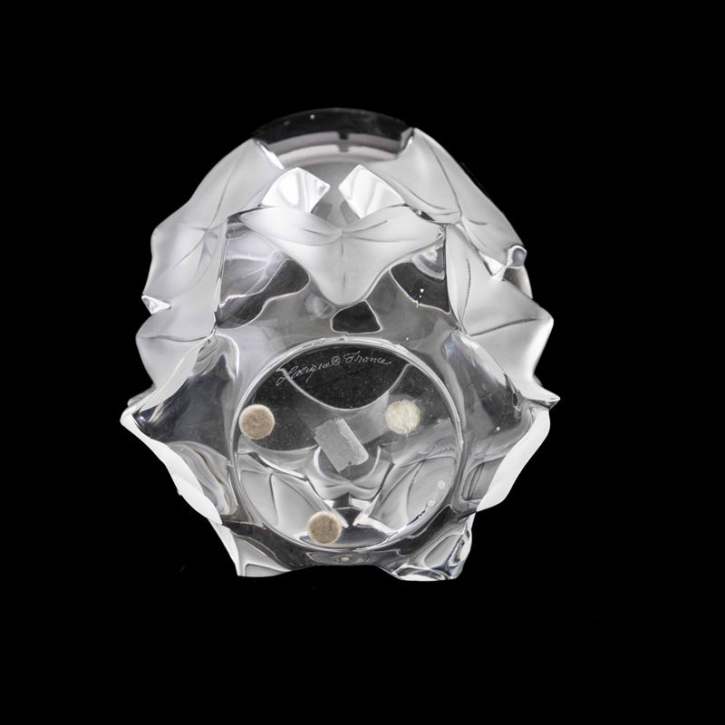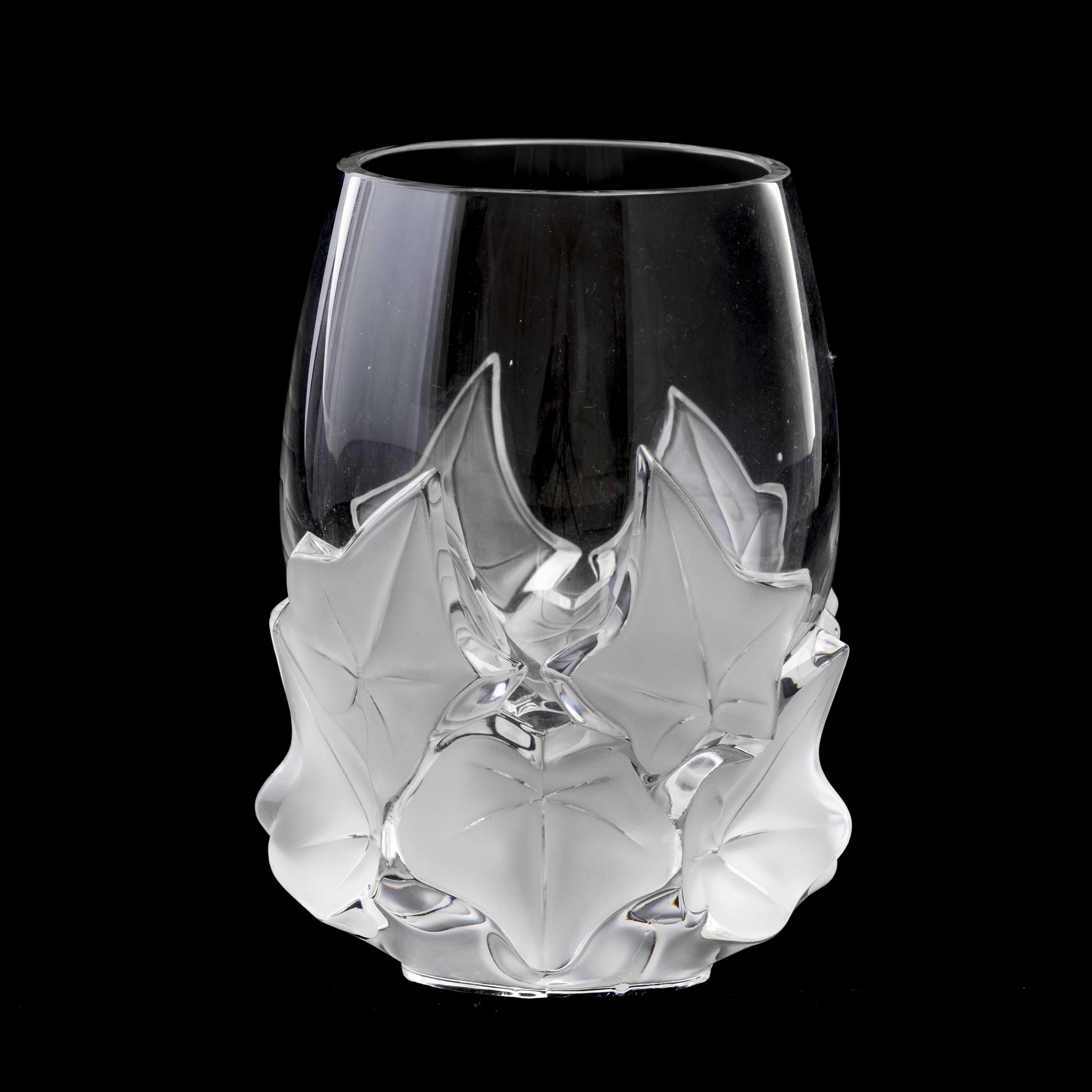 Vaso serie Hedera in cristallo trasparente con decoro di foglia d’edera sabbiata alla base.