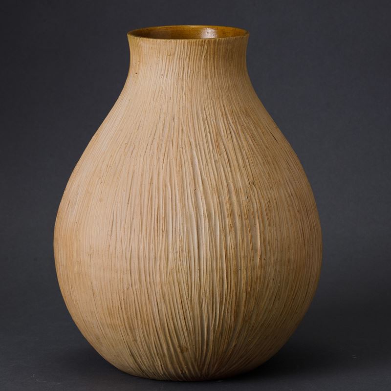Vaso in ceramica graffita con interno smaltato.