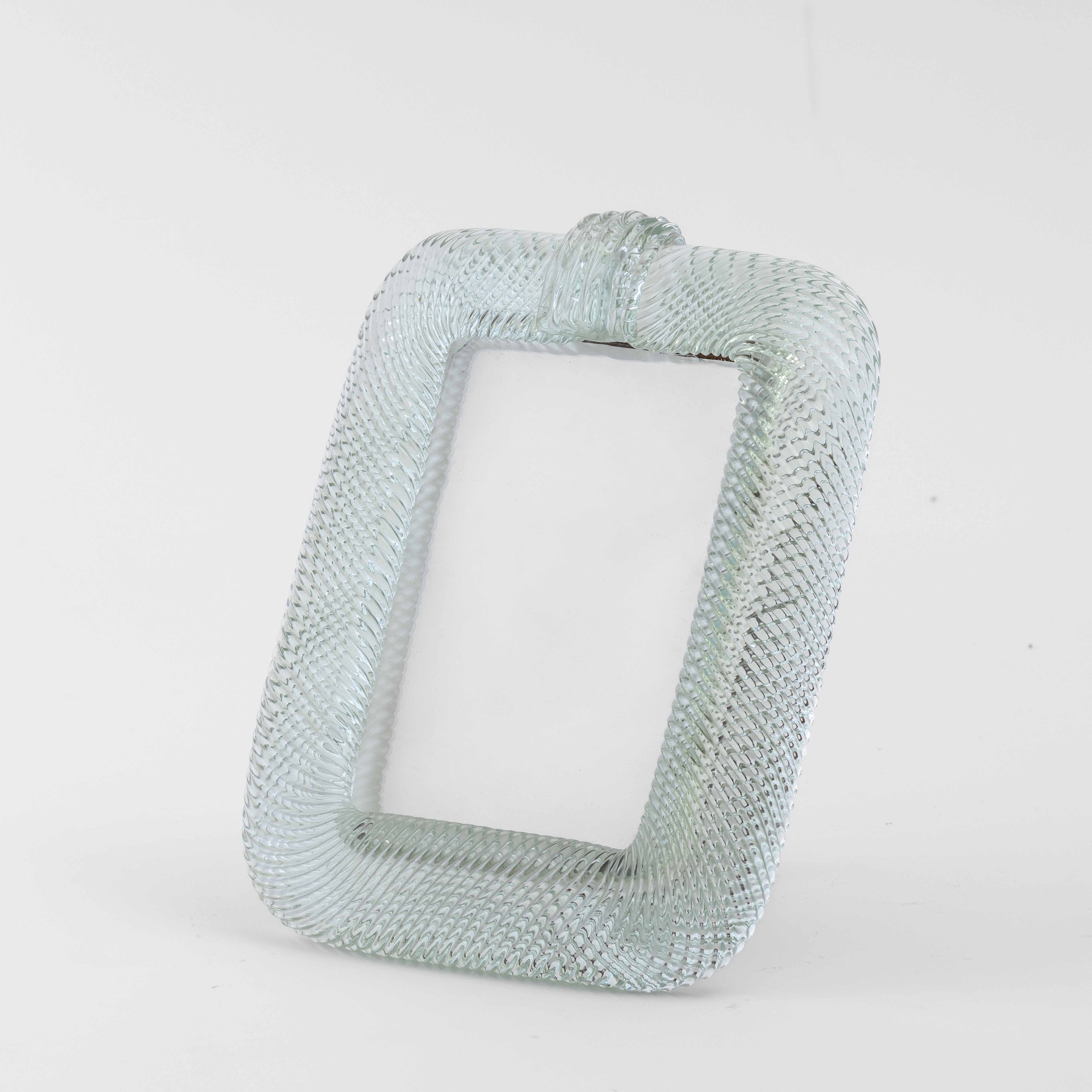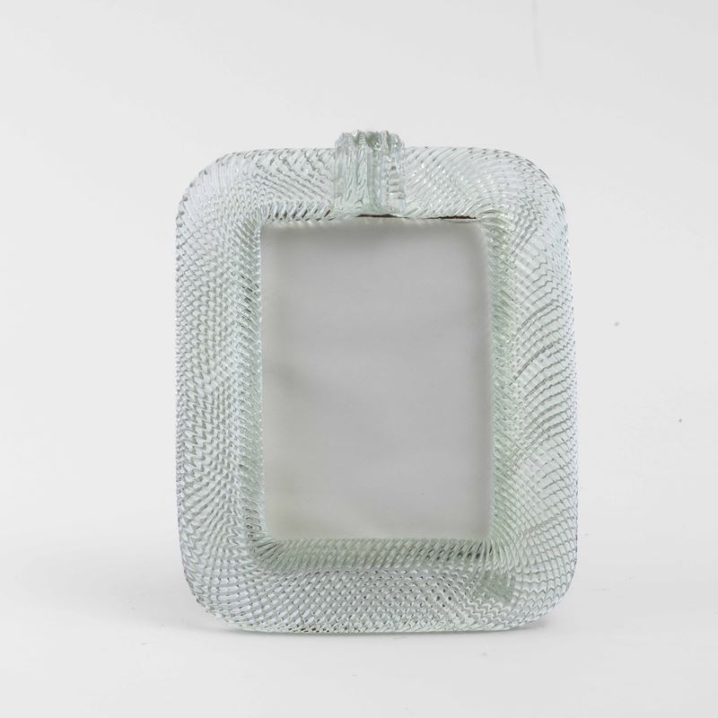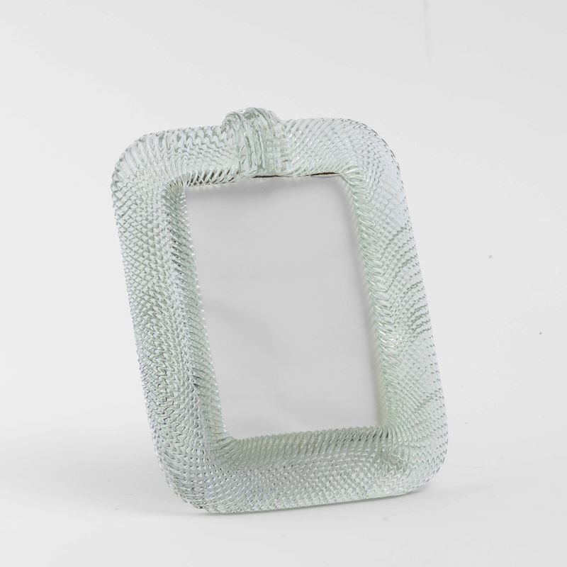Portaritratti con cornice in vetro a torciglione e cartella cordonata. Montatura in legno.