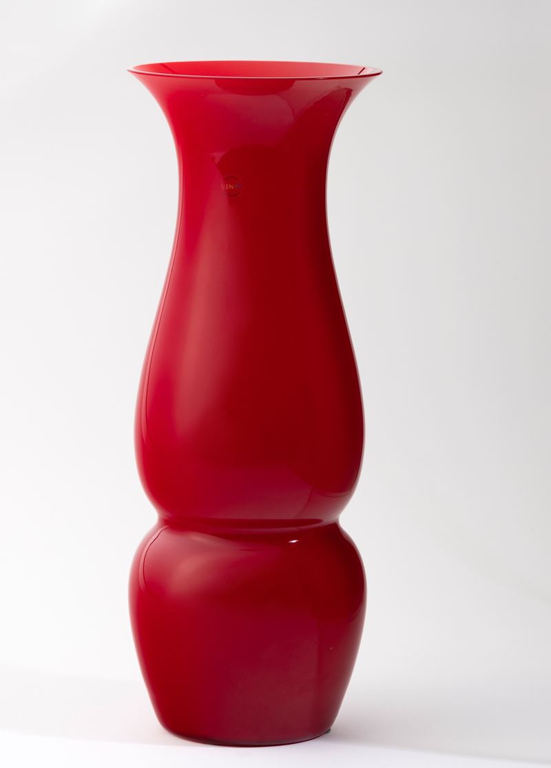 Vaso Lady in vetro opalino rosso e alto collo.
