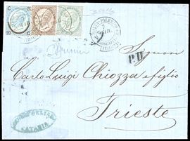 1865, Regno d’Italia, lettera da Catania per Trieste del 7 marzo 1865