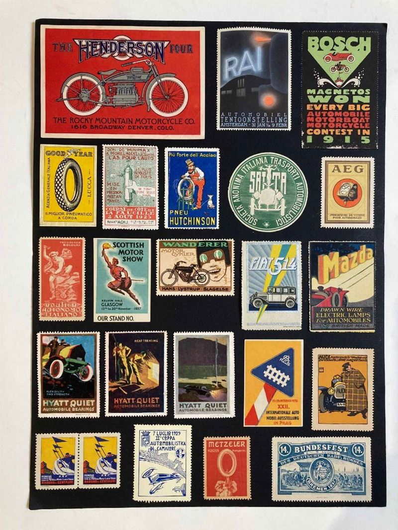 1900/1940, Erinnofilia, oltre 600 vignette a tema automobilistico, ciclistico, motociclistico, nautico, sportivo ecc.