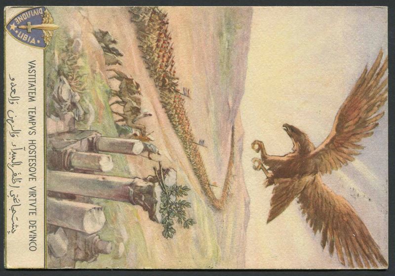 Su fr. di Somalia (S. 217) su cartolina della "Divisione Coloniale Libia" per Saluzzo dell'8 giugno. Molto bella, insieme non comune.