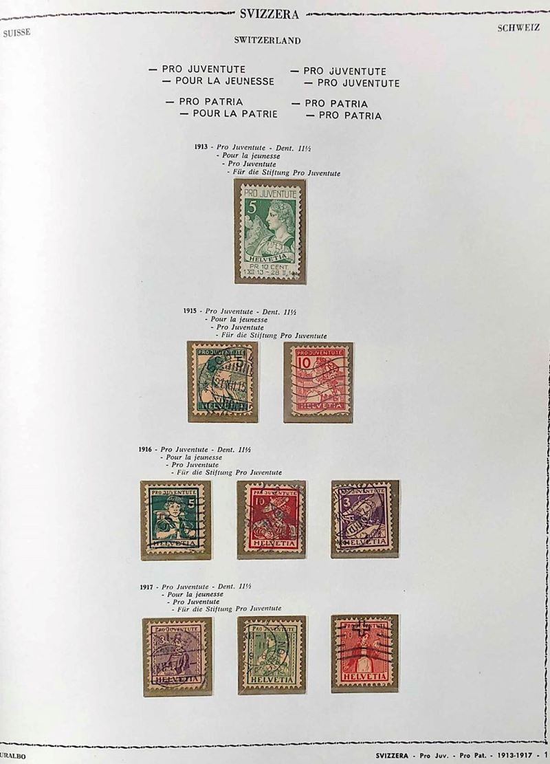 In album “Euralbo”, le prime serie incomplete, dal 1909 quasi tutte complete. Notata “Pax” completa e P.A. A1/A2. Mancano pochi esemplari, assenti i foglietti. Buon valore di catalogo, buona qualità. Merita attenta visione.
