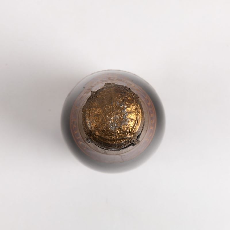 etichetta con segni d'usura del tempo e capsula danneggiata