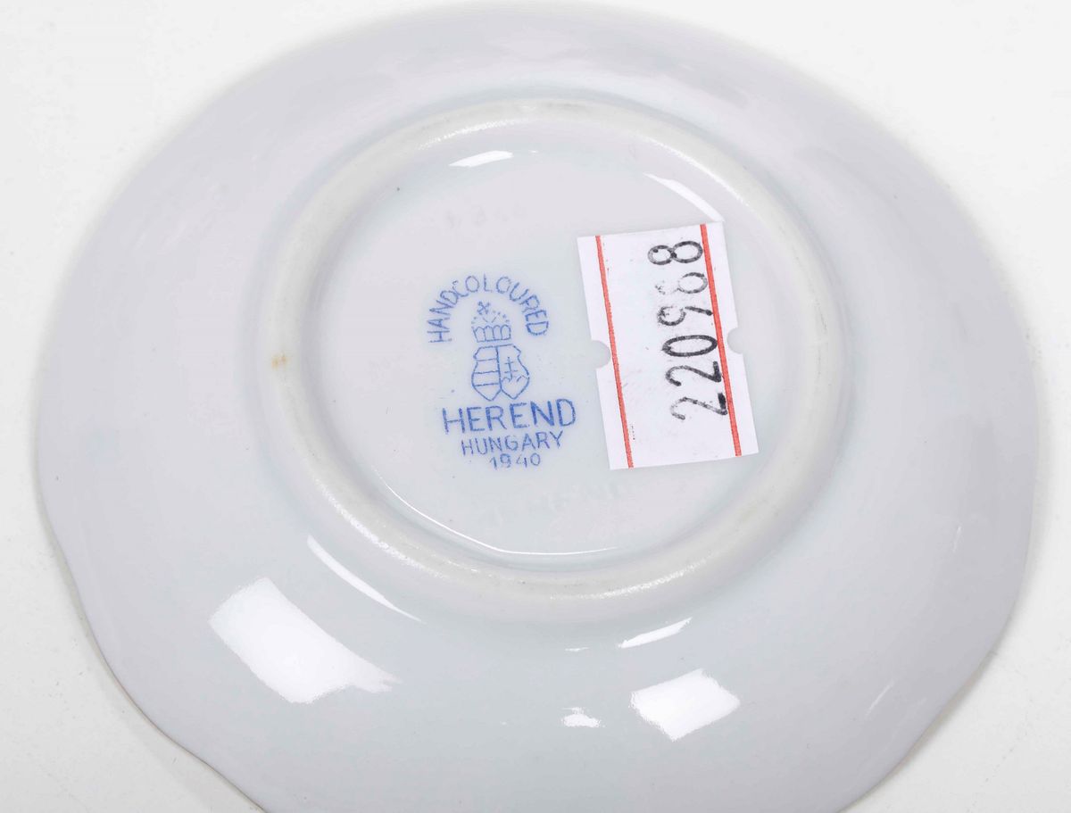 Porcellana. Marca: simbolo grafico della manifattura "Handcoloured Herend Hungary 1940" in blu. Conservazione: ottima