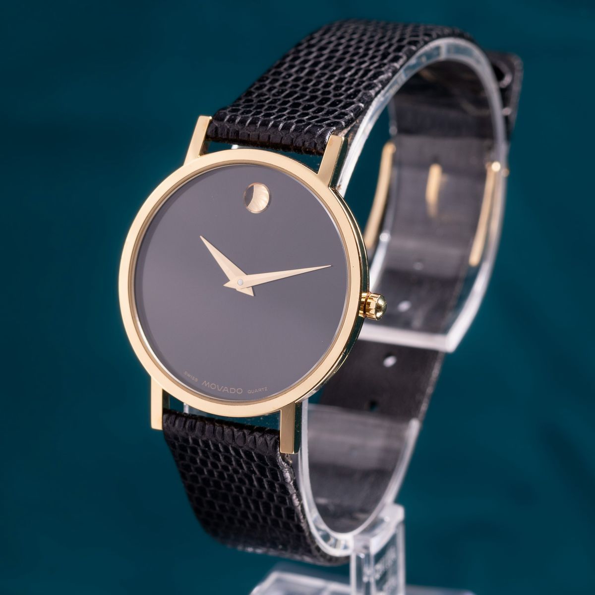 Movado Museum laminato al quarzo, quadrante nero soleil lancette dauphine con cinturino in pelle