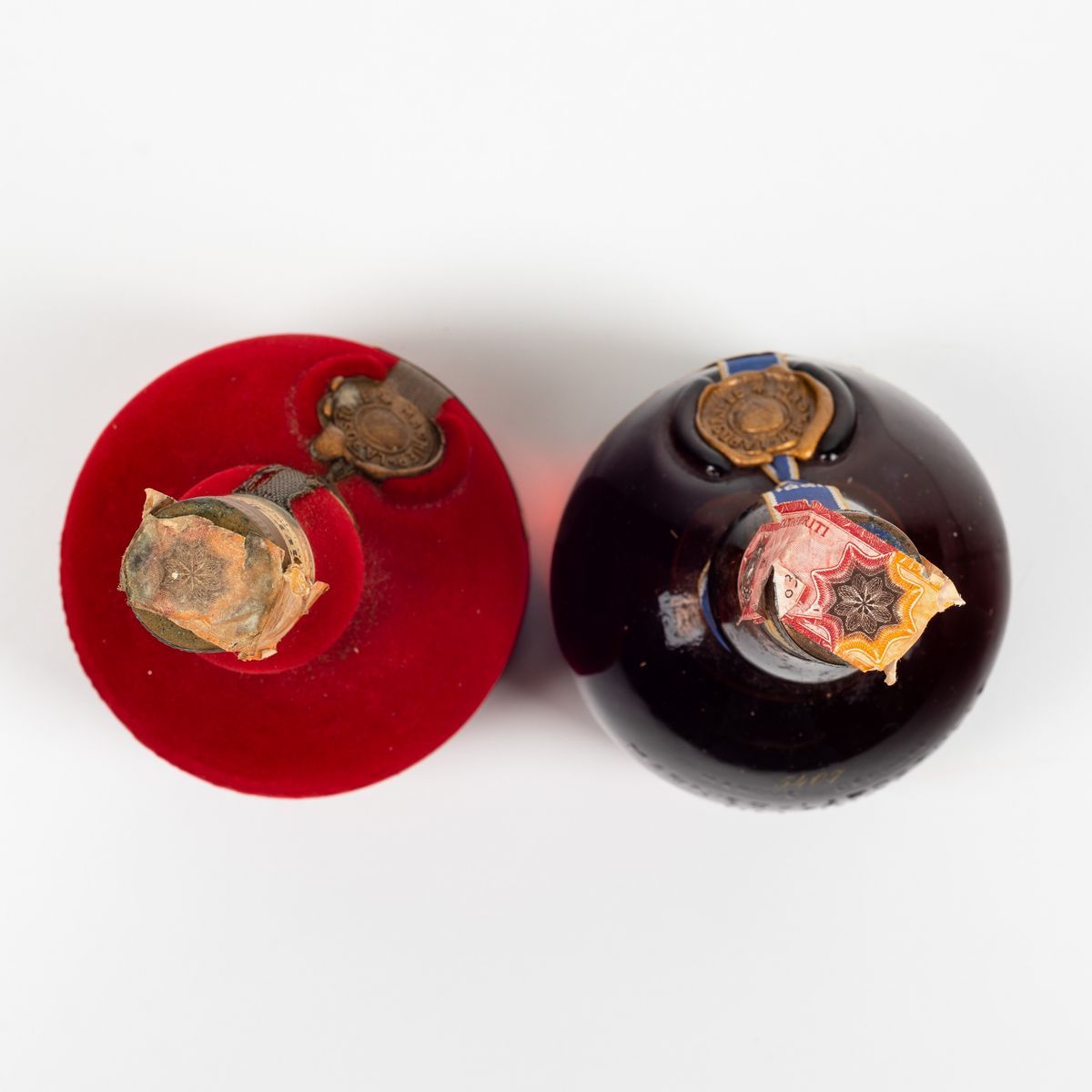 etichette e capsule con segni d'usura del tempo