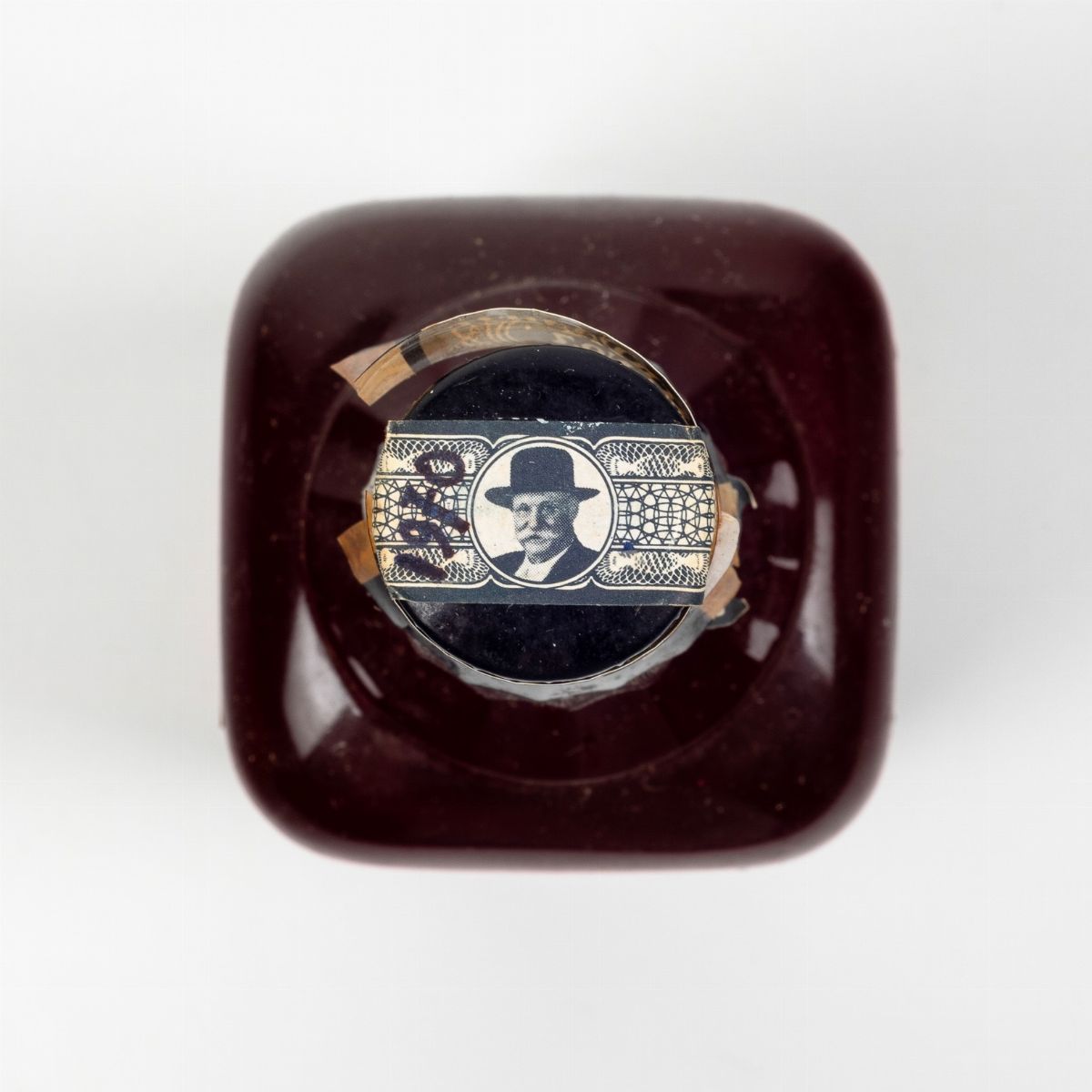 etichetta e capsula con segni d'usura del tempo