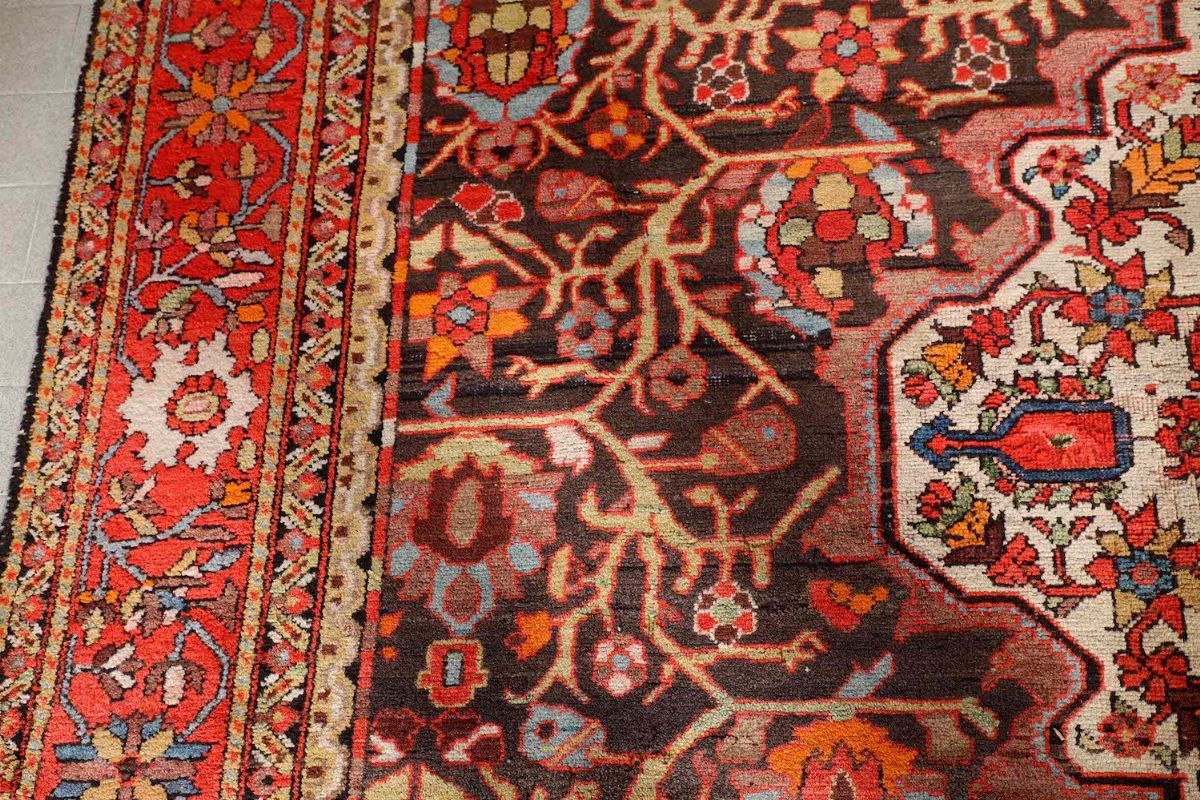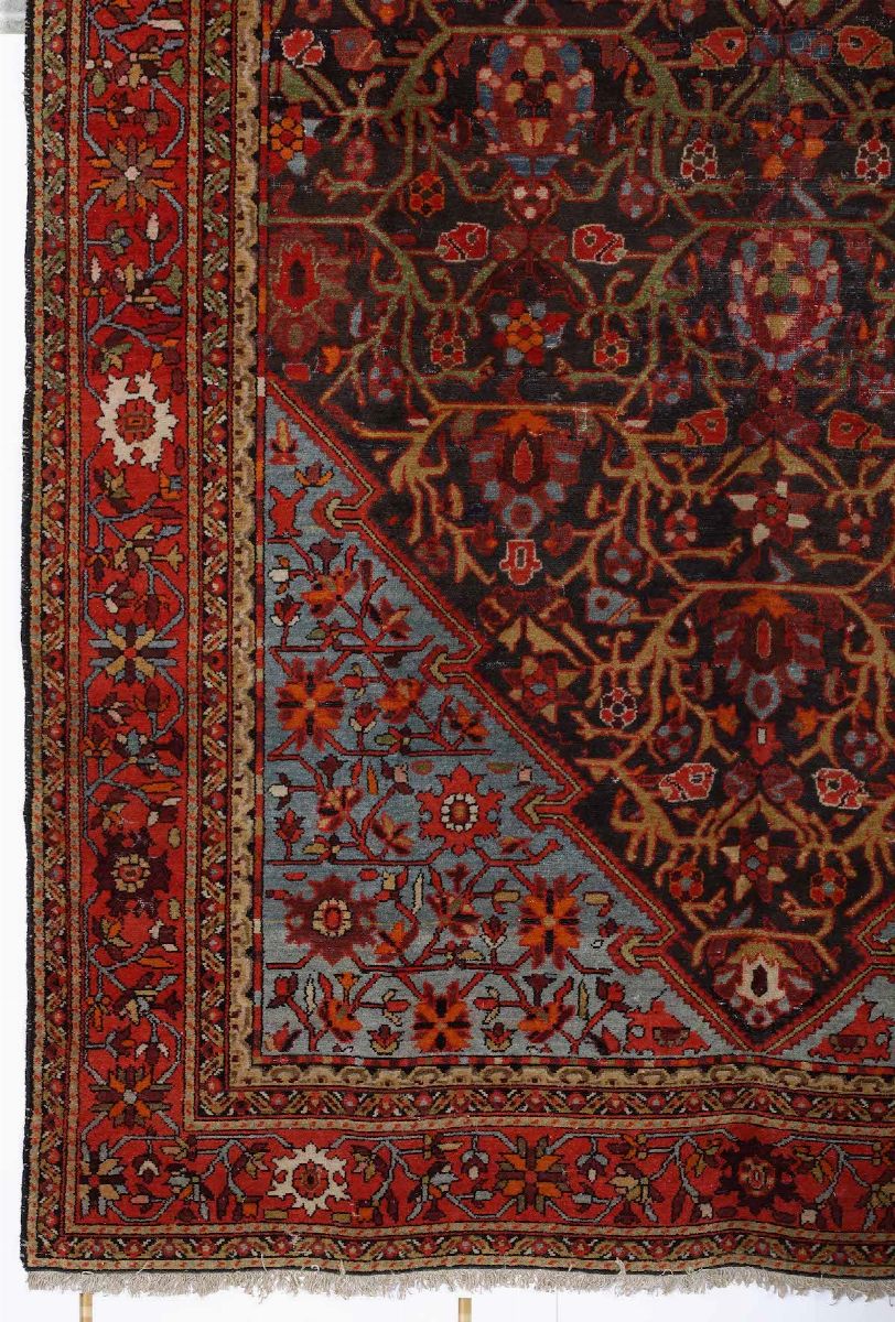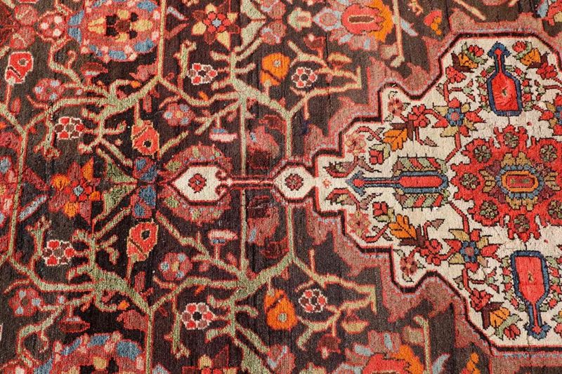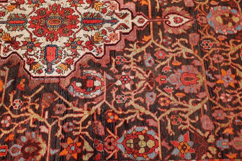 campo marrone con medaglione centrale bianco, angolari azzurri