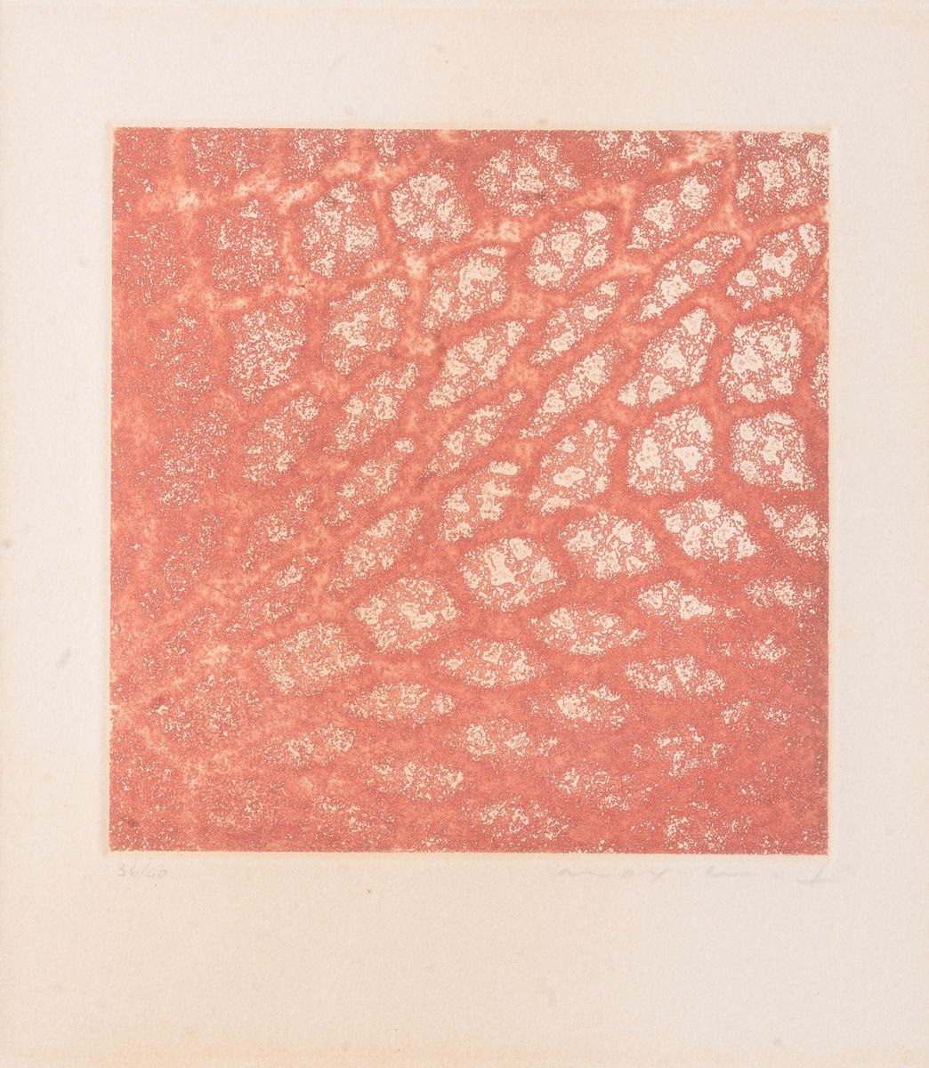 Incisione e acquatinta a colori, es. 36/40, firmata a matita in basso a destra e numerata in basso a sinistra, cm 33,5 x 26 (foglio) e cm 11,5 x 11,5 (lastra)