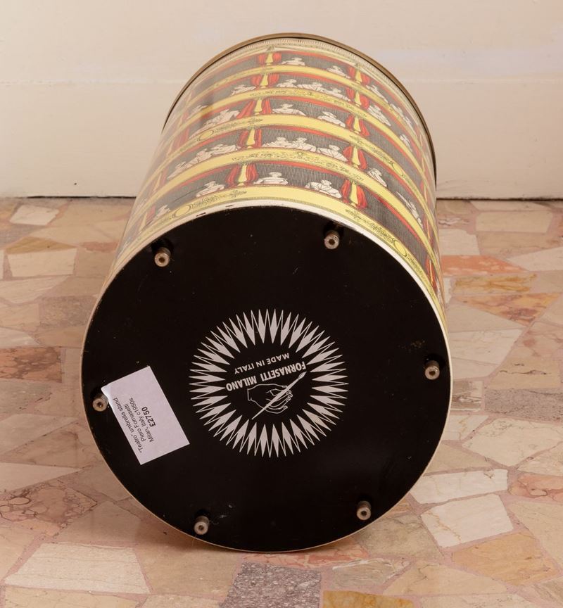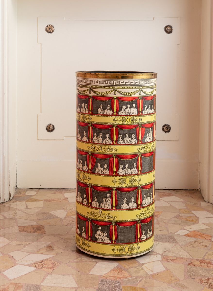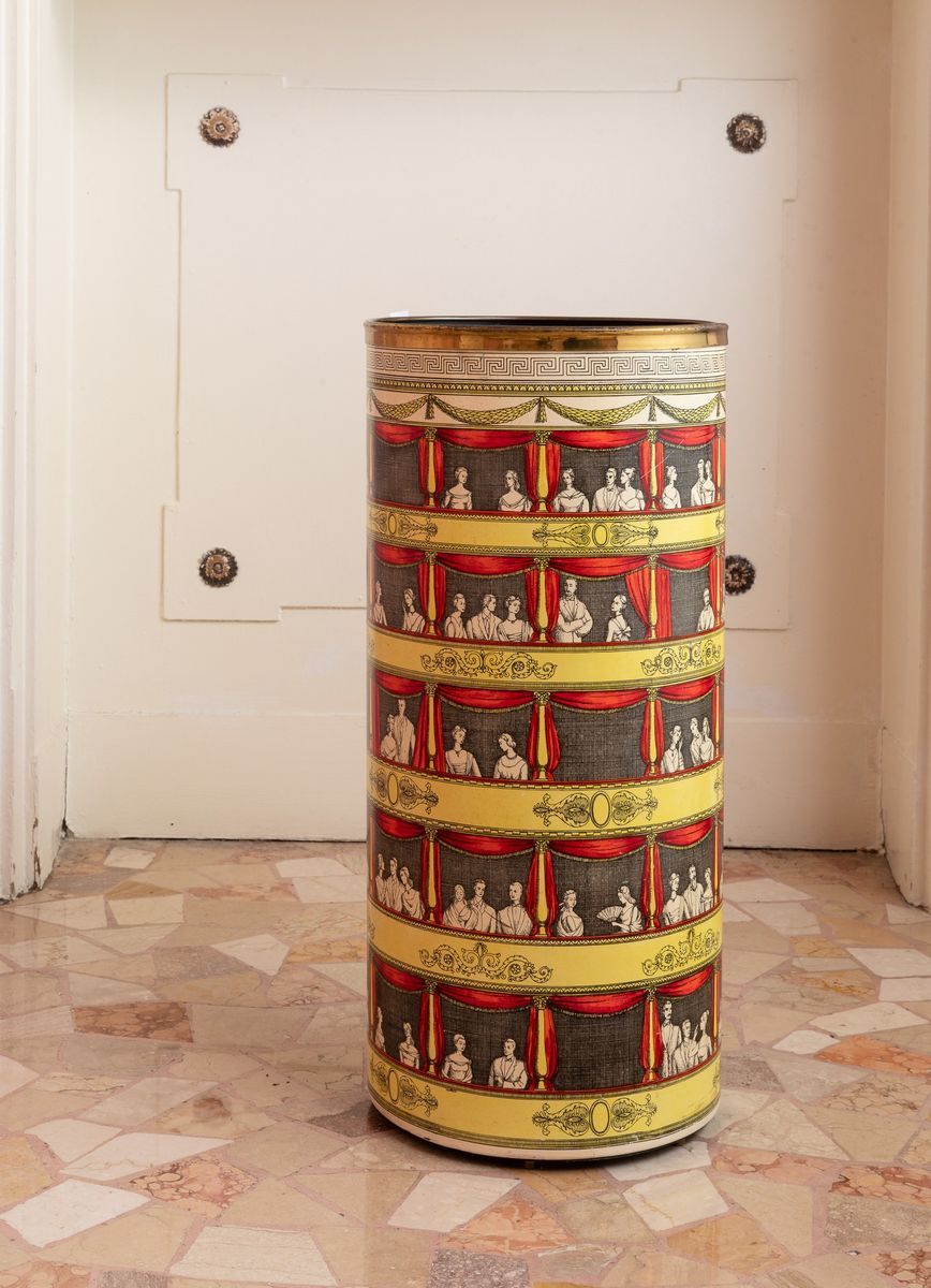 Portaombrelli in metallo serigrafato e colorato con decoro mod. Teatro. Dettagli in ottone.