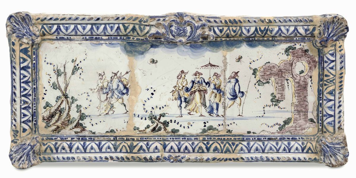 Maiolica policroma. Marca assente. Dimensioni cm 73x33 circa