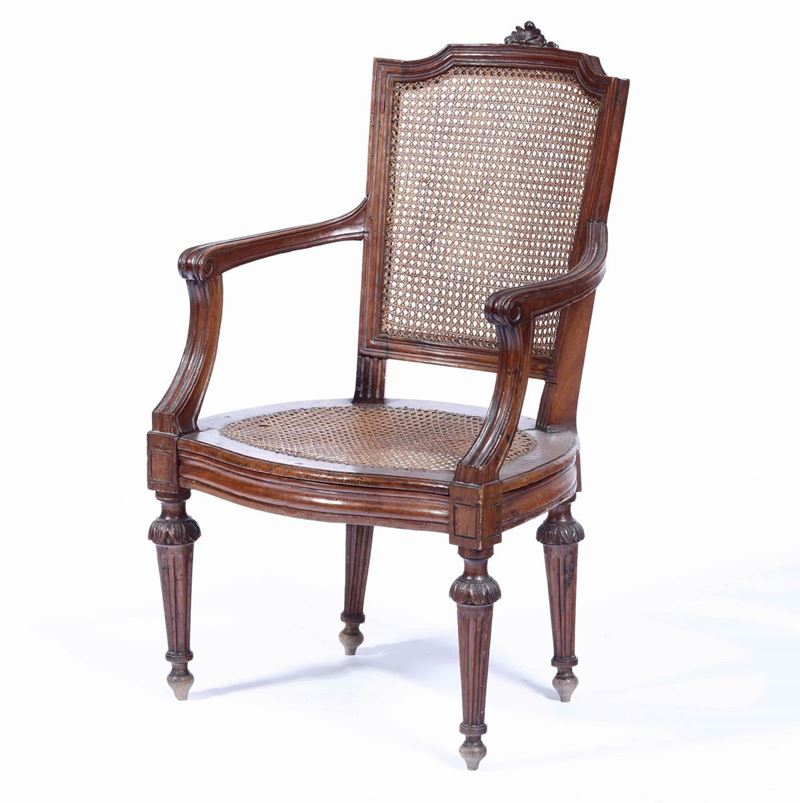 Poltroncina Luigi XVI, seduta e schienale in paglia di Vienna