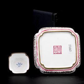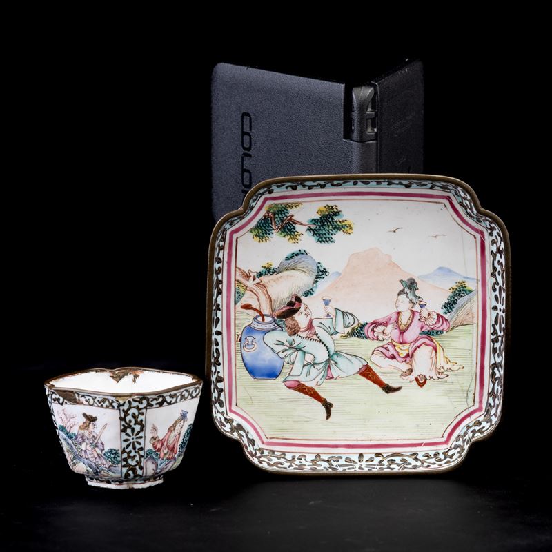 Qianlong period (1736-1796). A small square plate and a cup
