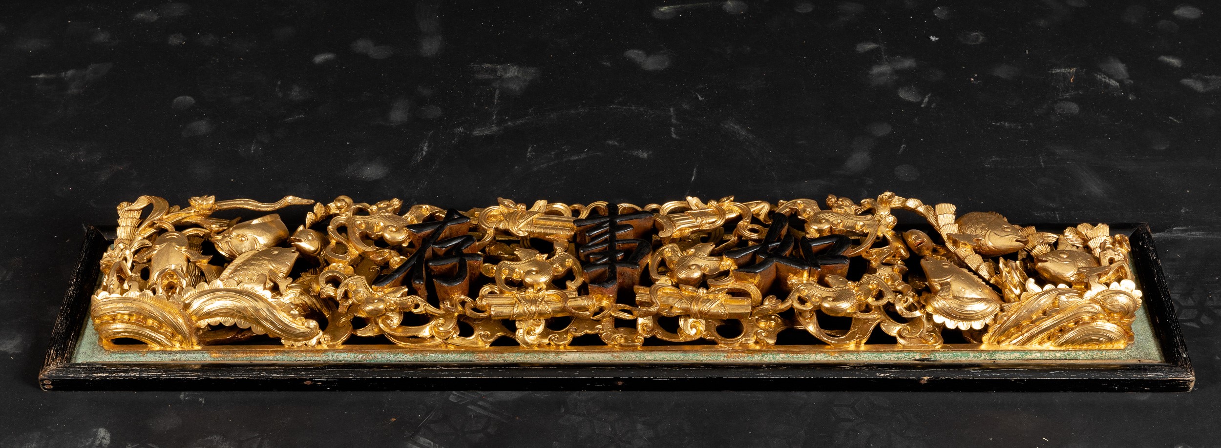 1800s. A lacquered wood panel and a carved and gilt wooden frieze