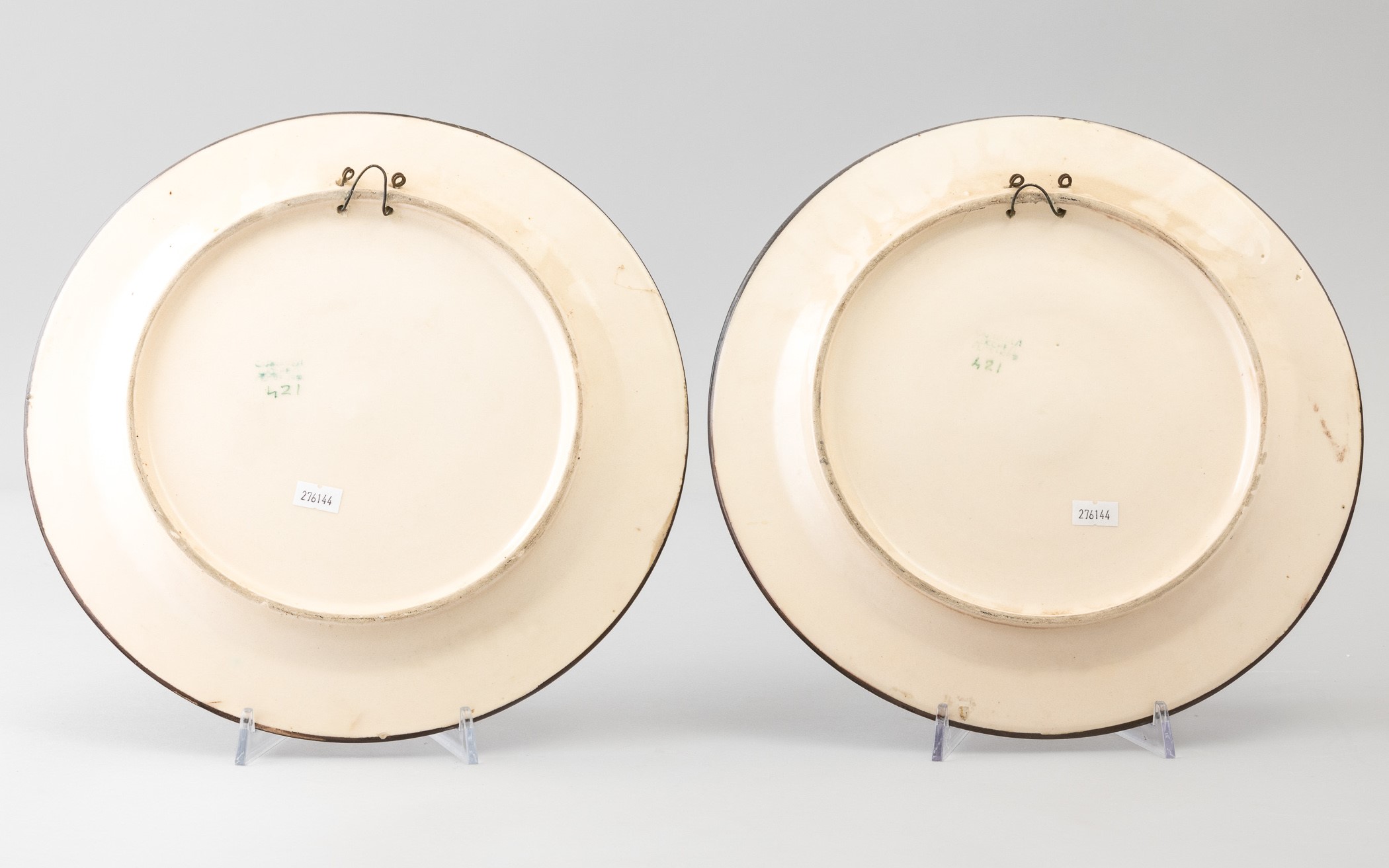 Two earthenware ceramic plates with a polychrome airbrush decor. Maker's mark