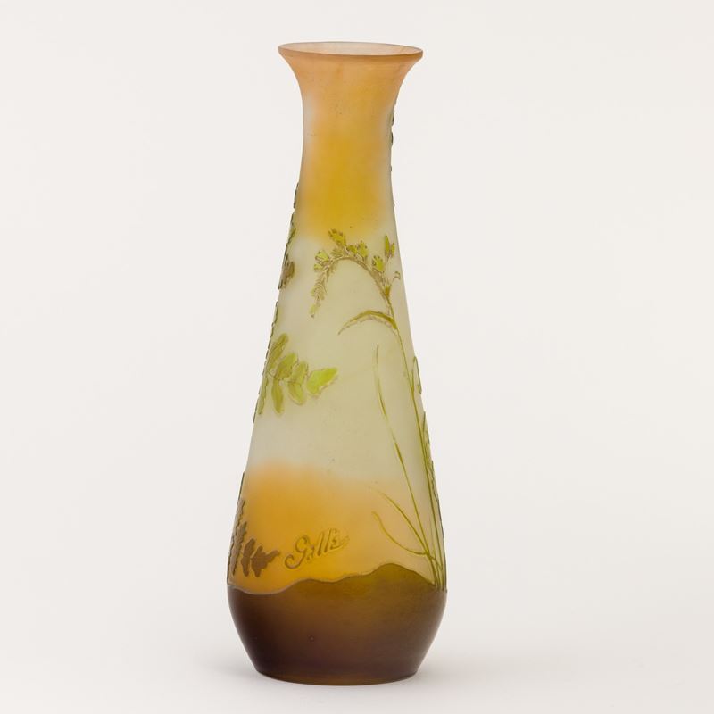 A cameo glass vase. Embossed signature