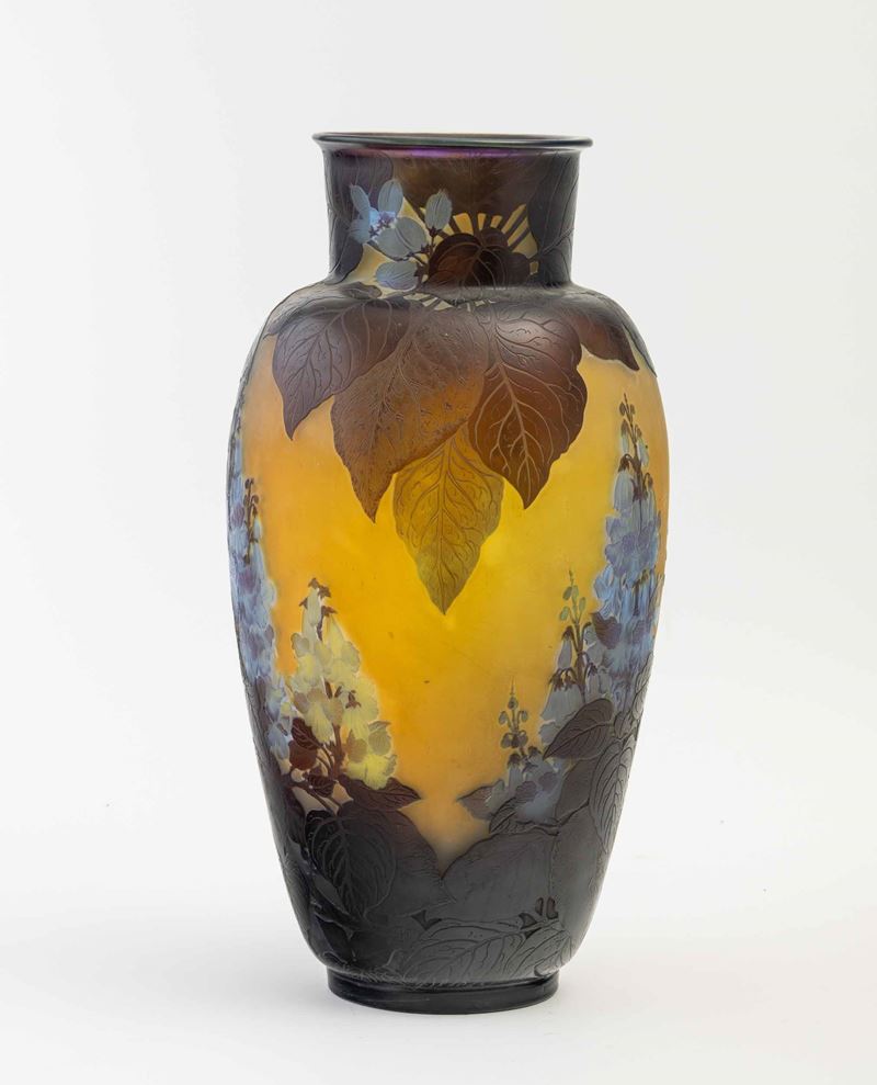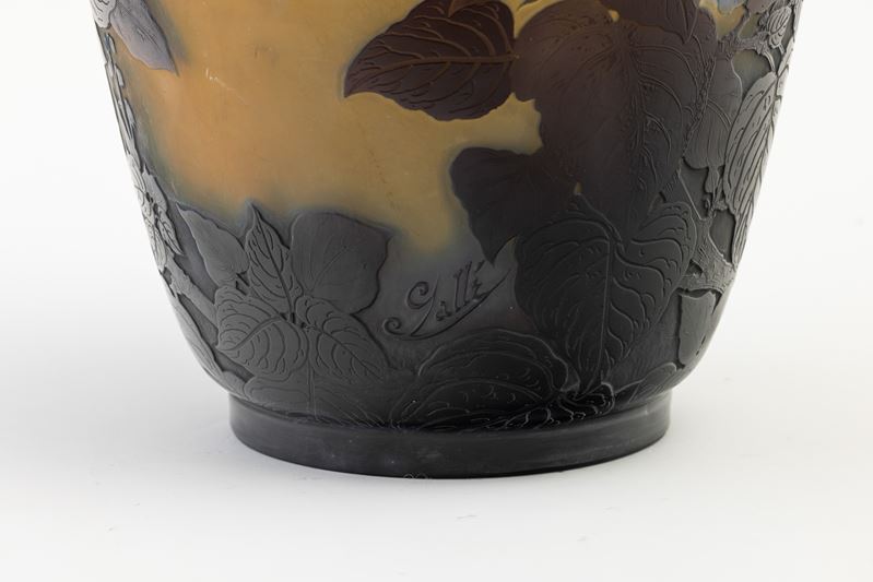 A monumental vase with a cameo decor. Embossed signature