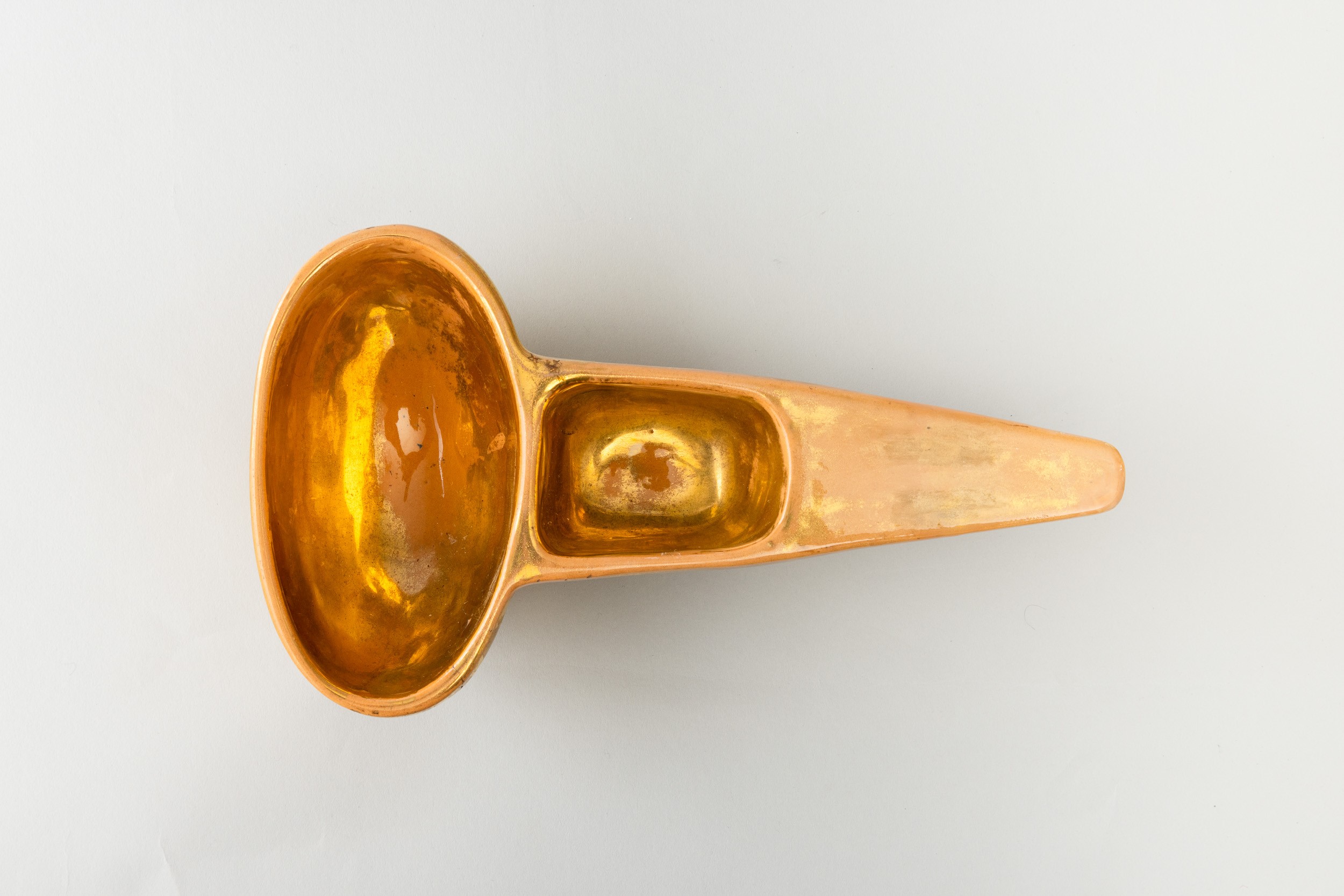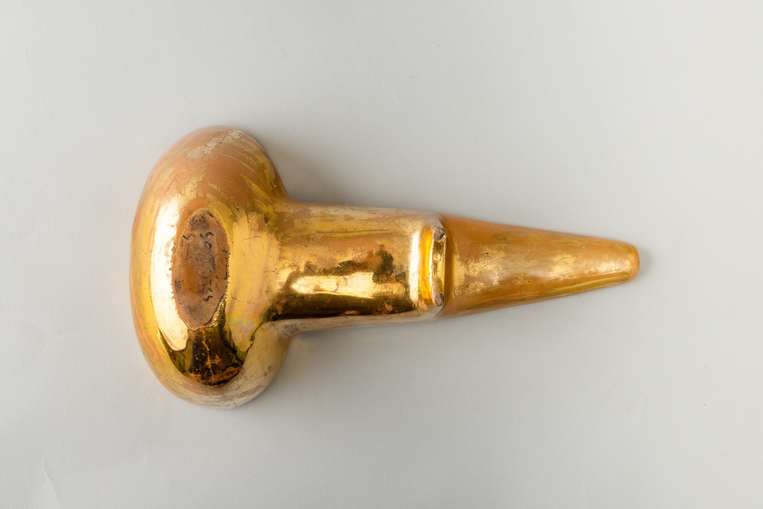 A ceramic piece with a gold leaf decor. Made for Sestante Milano. Signed by the author