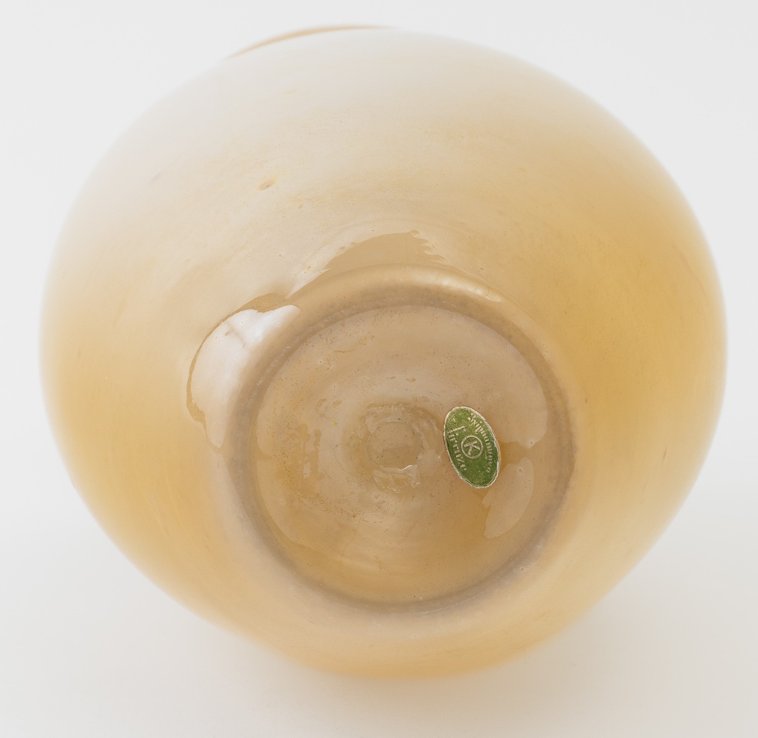 A rare Incamiciato glass and gold leaf vase with an iridised surface. Old store label from Firenze. Acid-etched signature Seguso Murano